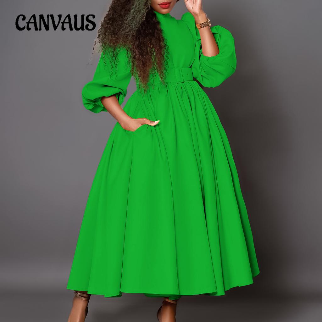 Spring and Autumn Plus Size Women's Dress Half High Neck Split Sleeve Waist Temperament Waist Slim Large Swing Dresses