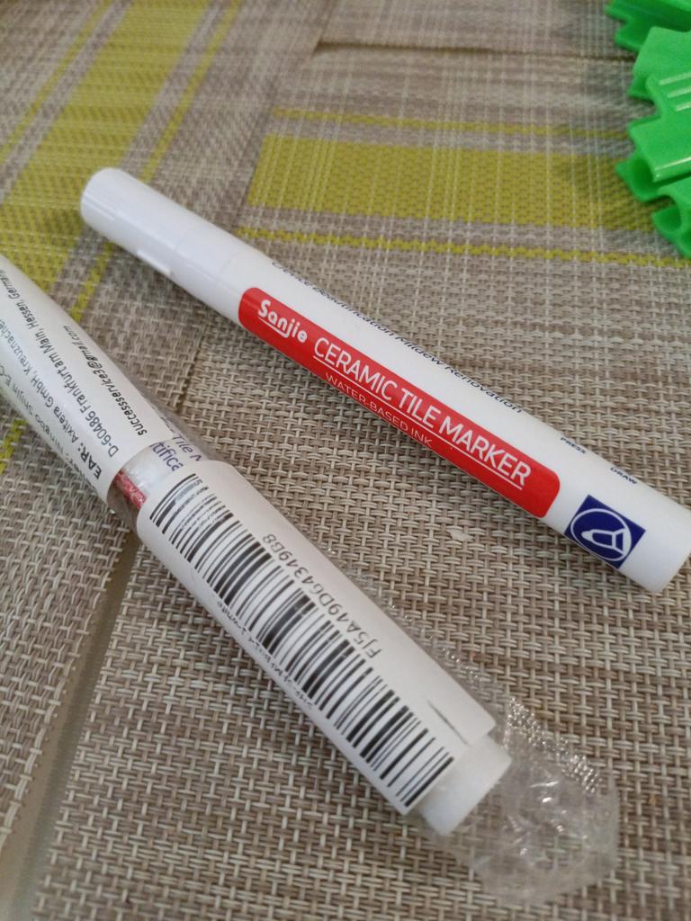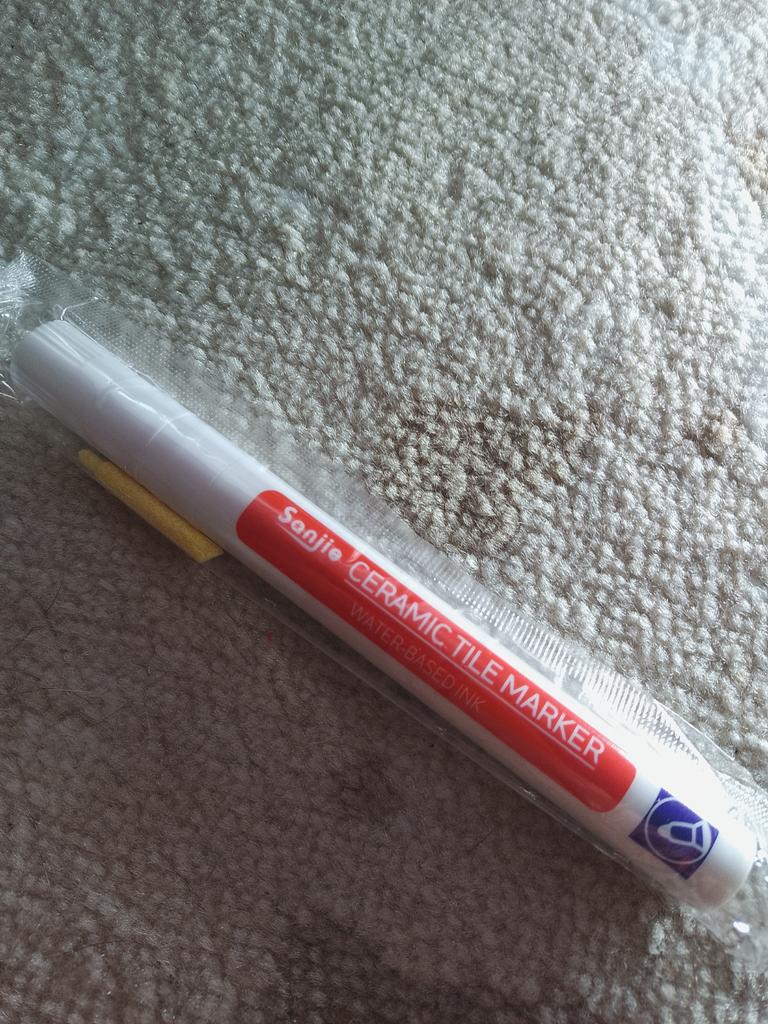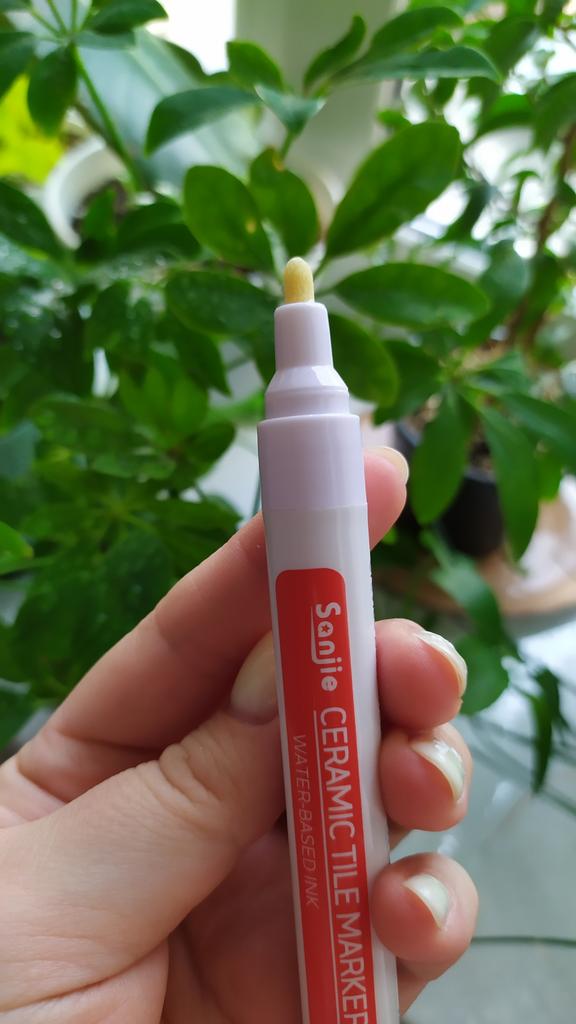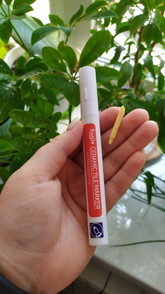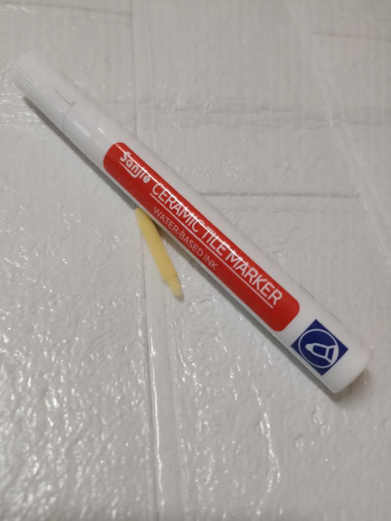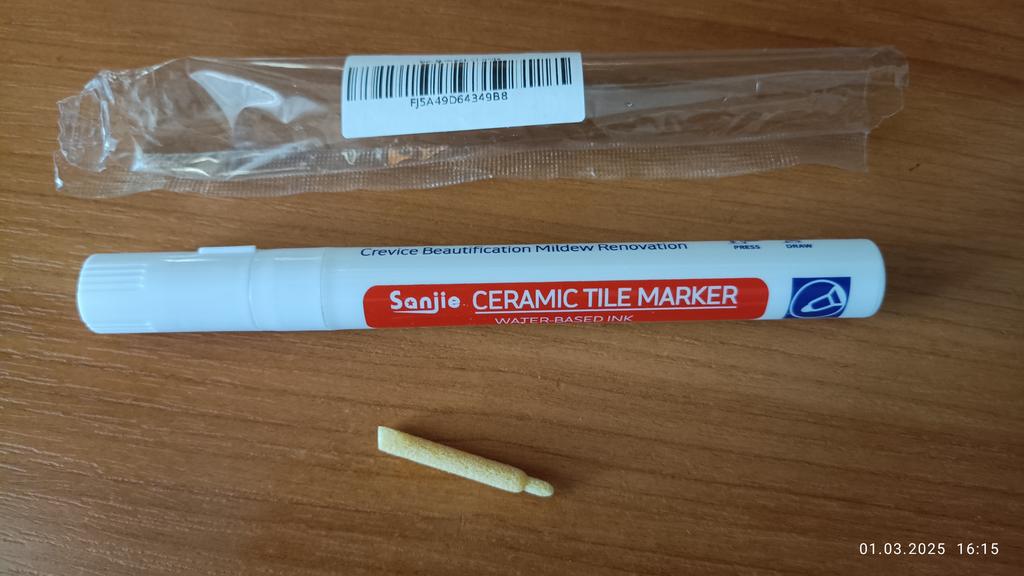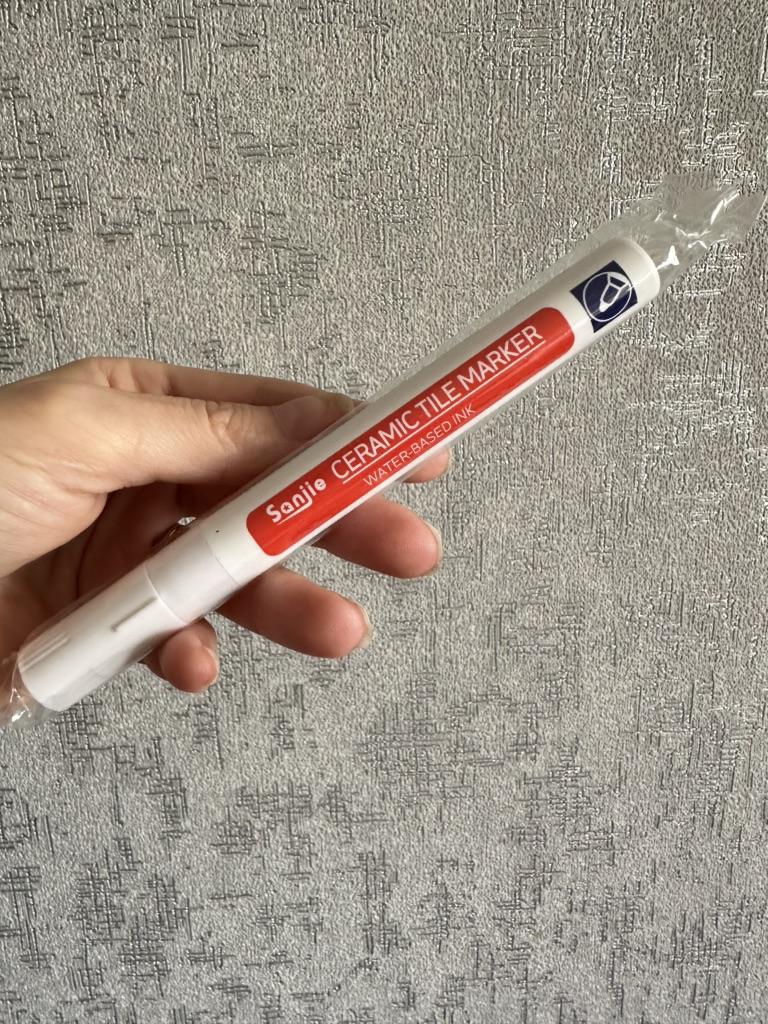 Tile marker Waterproof marker for painting tile joints. To use, you need to shake the marker, apply pressure and get to work.. The marker is working, the paint is a little translucent, but it erases well. The packaging is reliable, everything arrived intact.