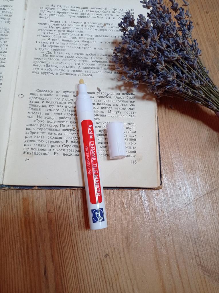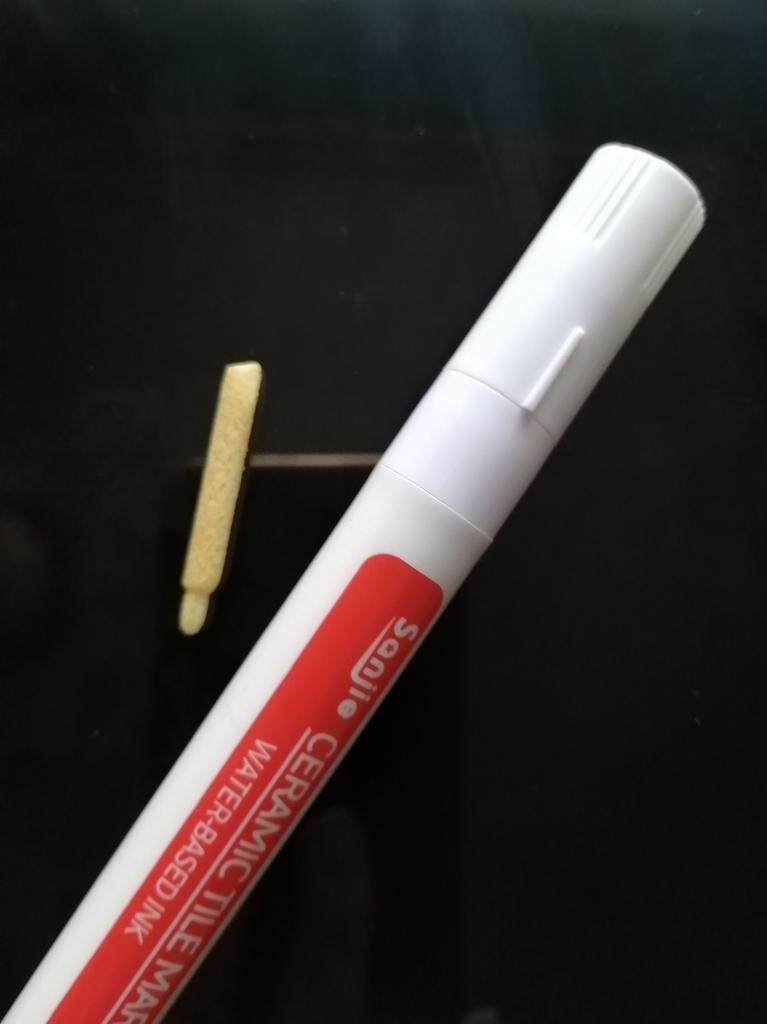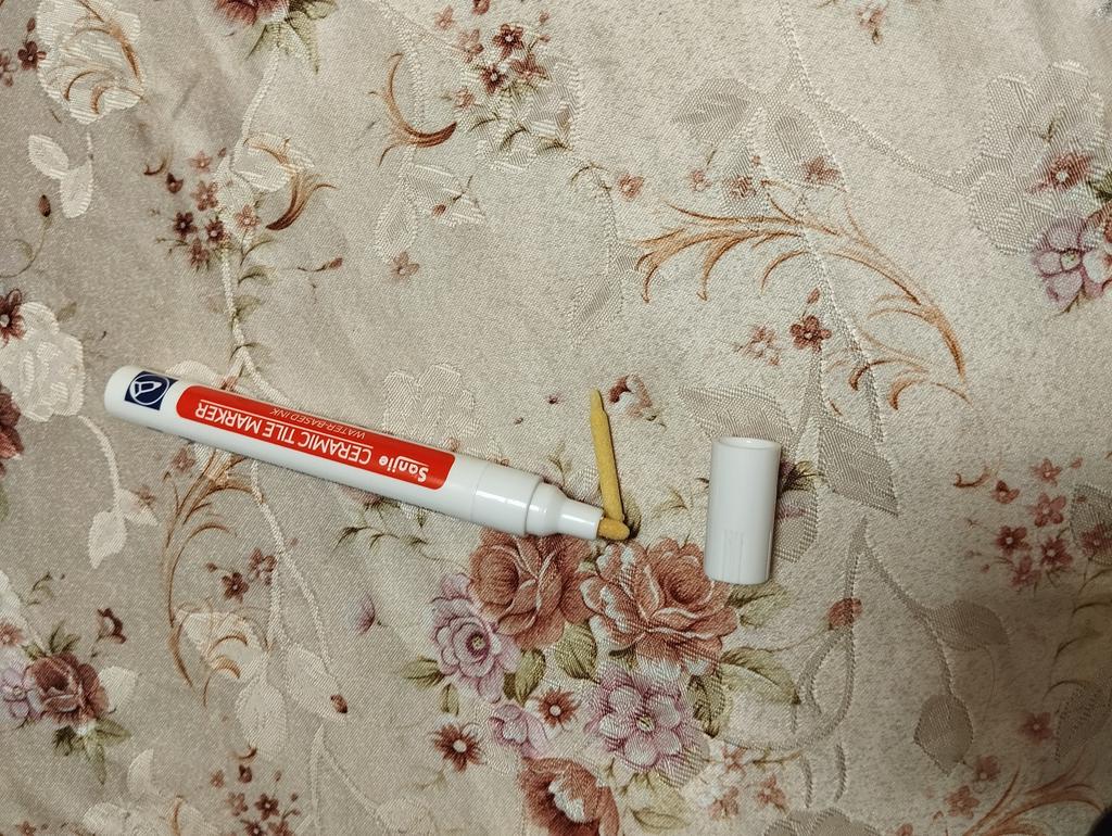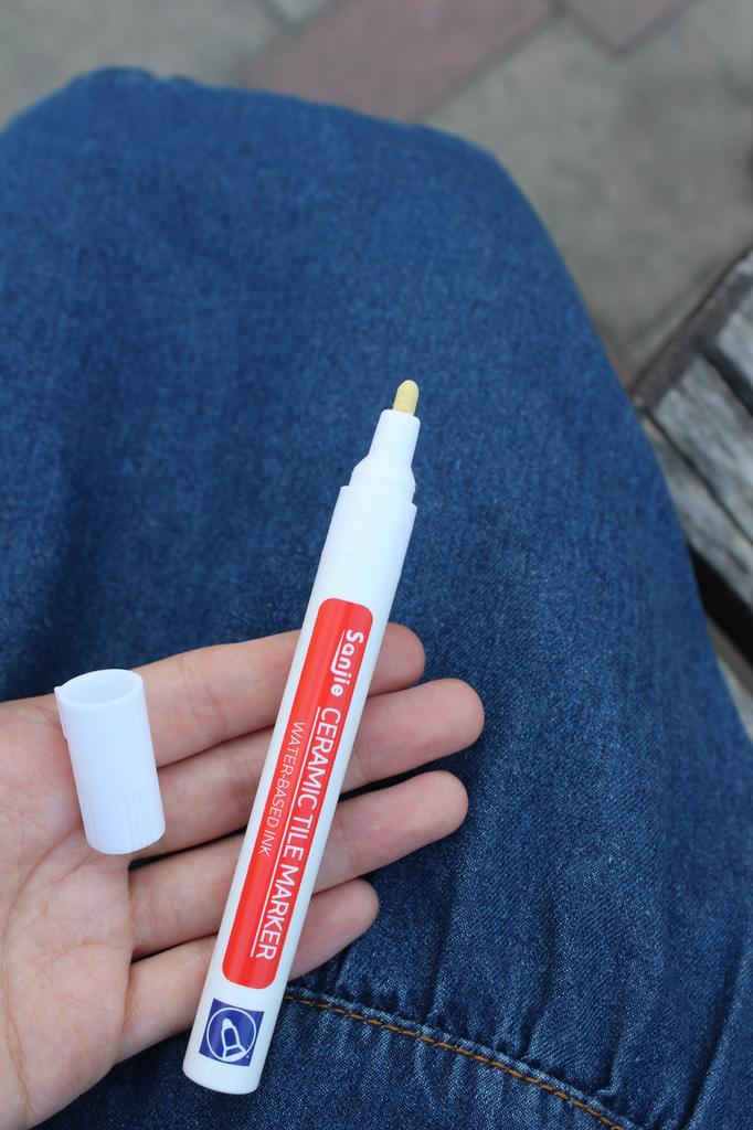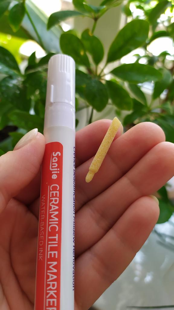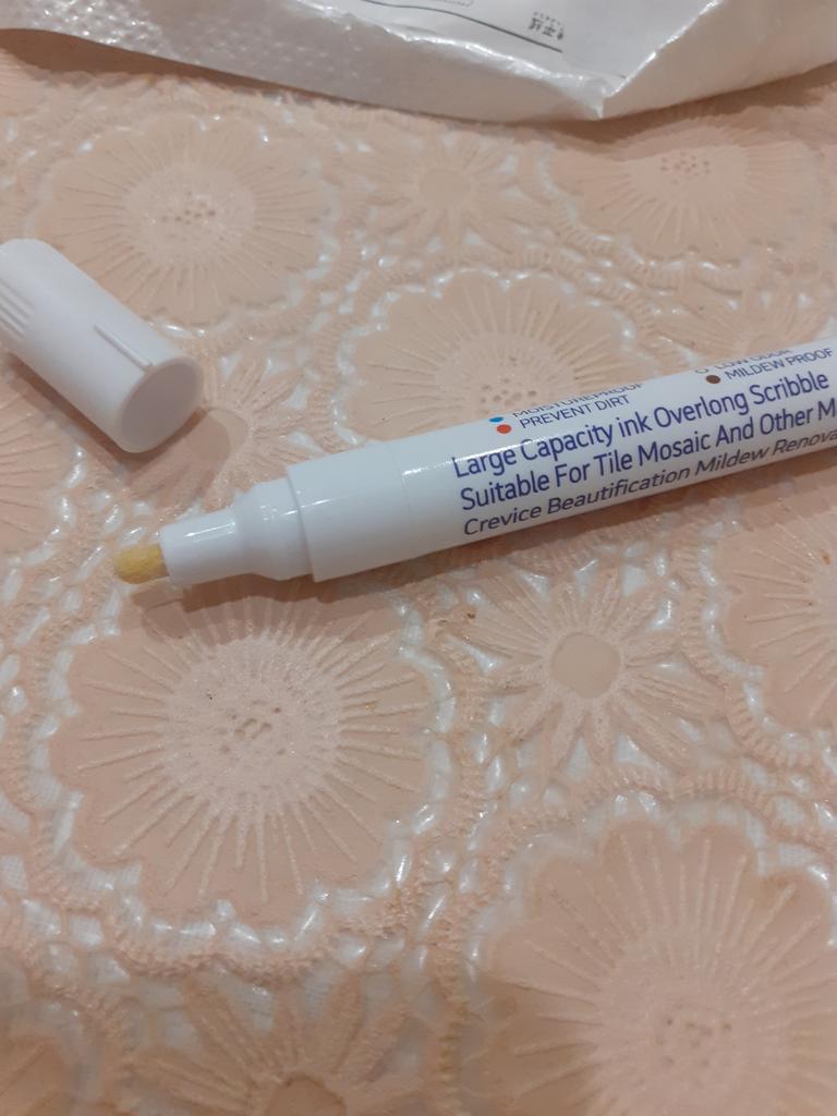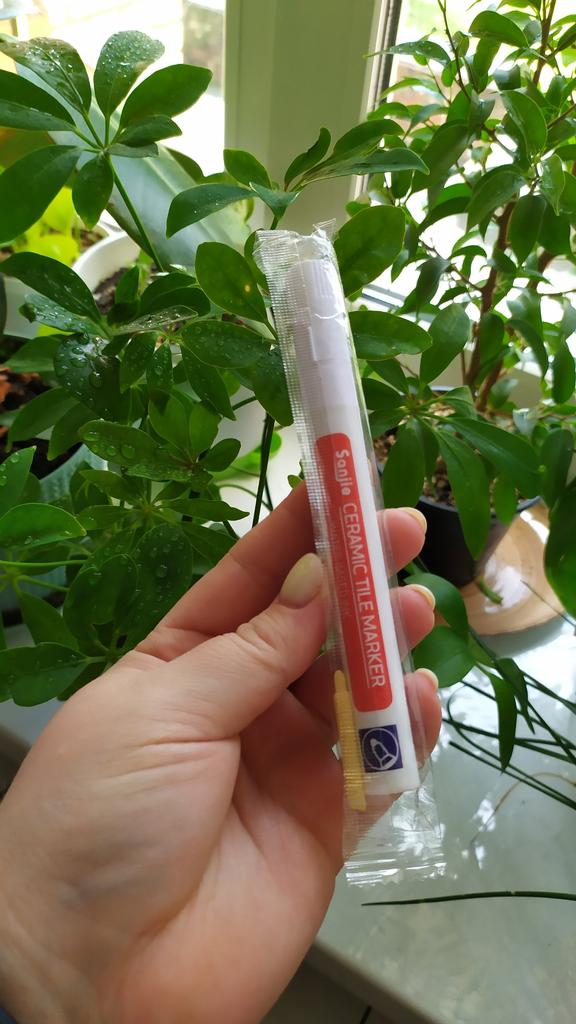 Tile marker Waterproof marker for painting tile joints. To use, you need to shake the marker, apply pressure and get to work.. The marker is working, the paint is a little translucent, but it erases well. The packaging is reliable, everything arrived intact.