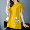 100% Cotton Short-sleeved Mid-length T-shirt Women's Summer Solid Color Pattern Printing All-match Thin Mid-length Top Trendy