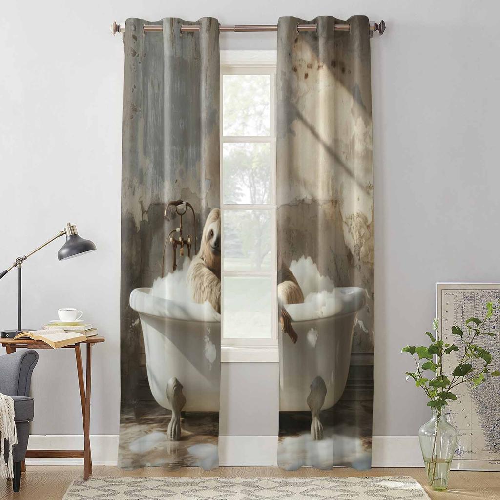 Vintage Oil Painting Sloth Window Curtains for Living Room Luxury Bedroom Curtain Kitchen Blinds Drapes Curtains