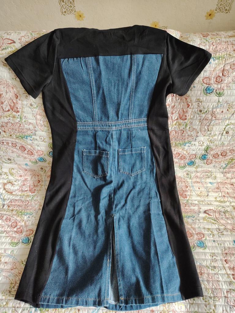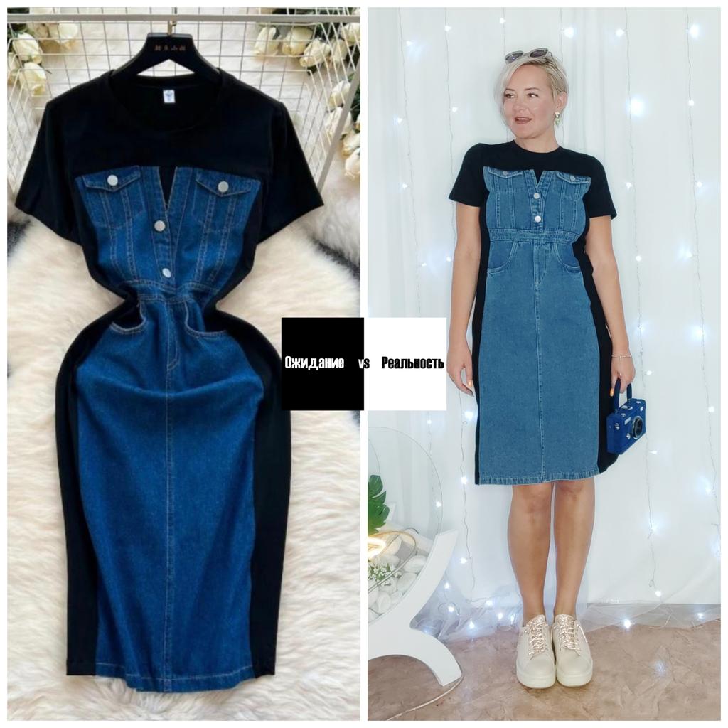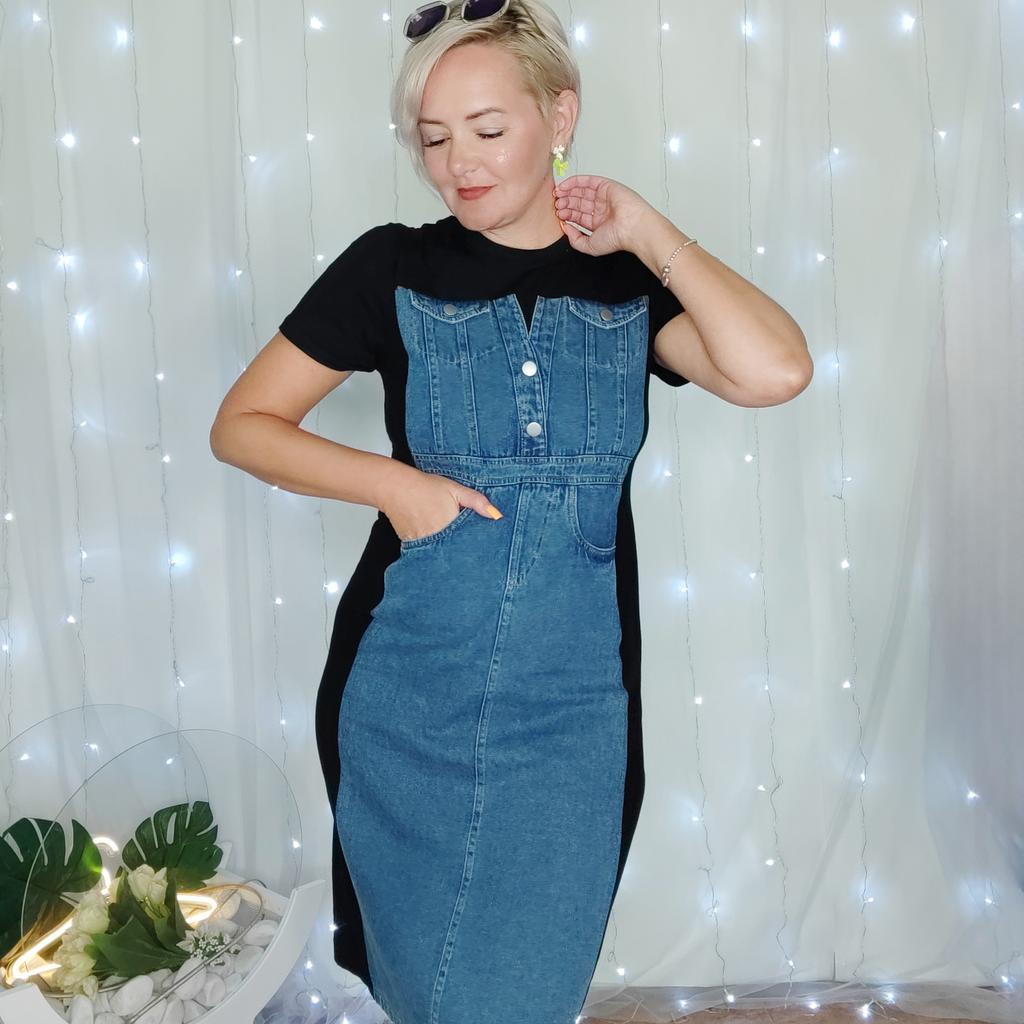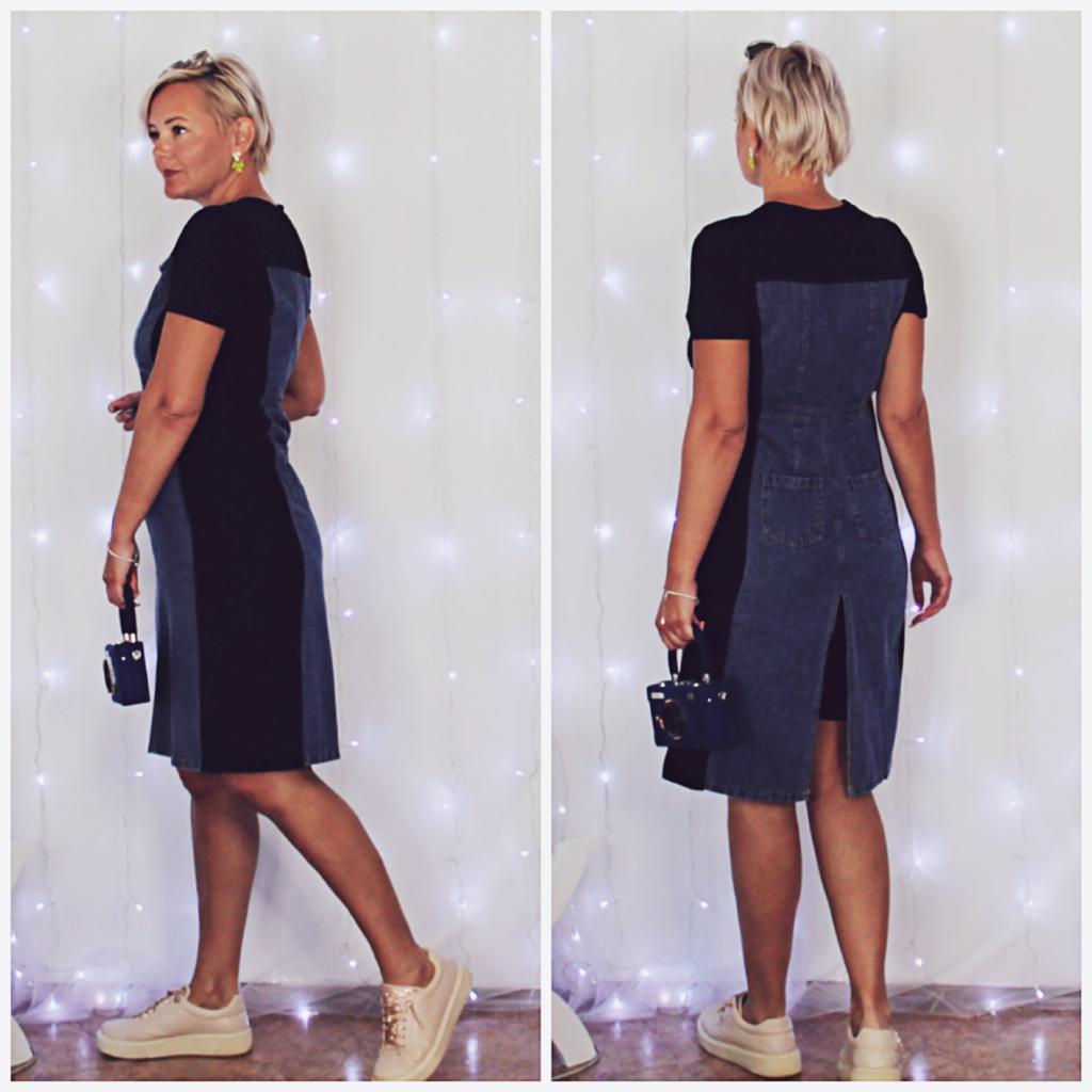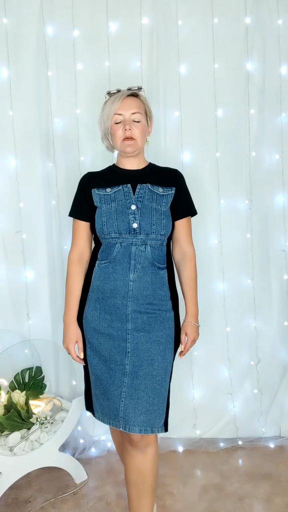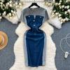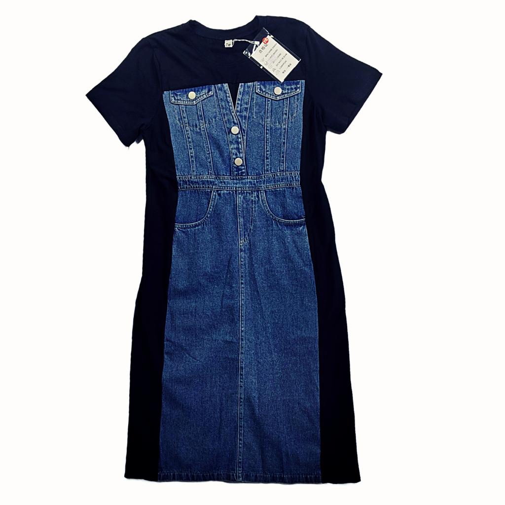 New Trendy Casual Dress Women's Contrast Vintage Denim Panel Short Sleeve Slim Fit Pencil Dress