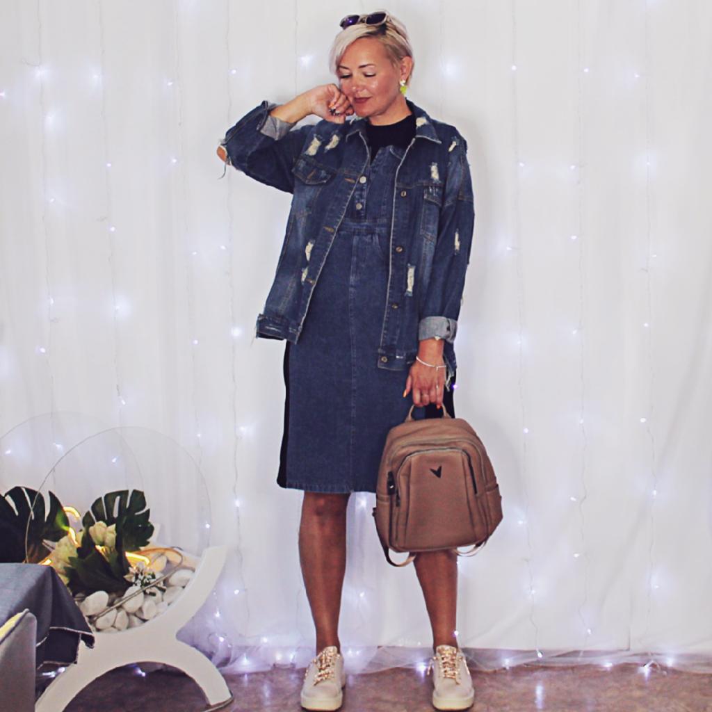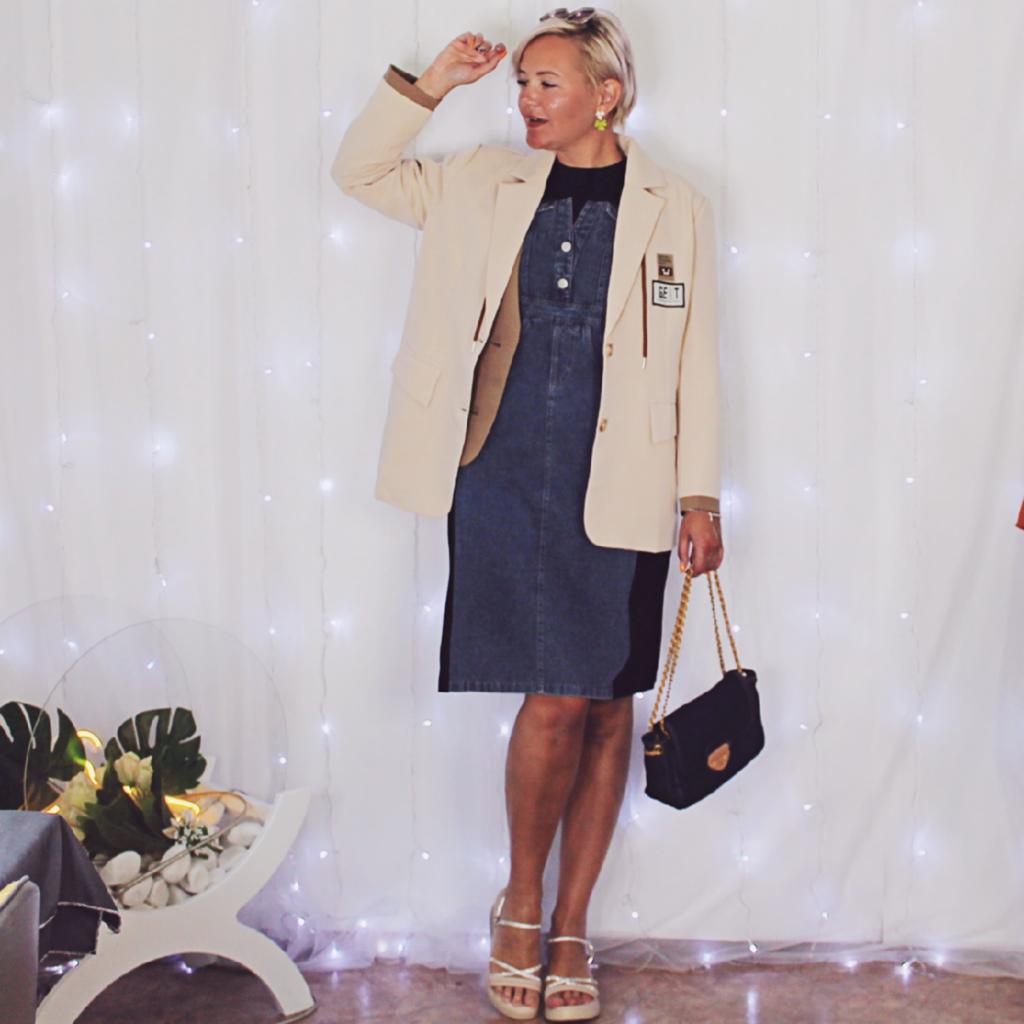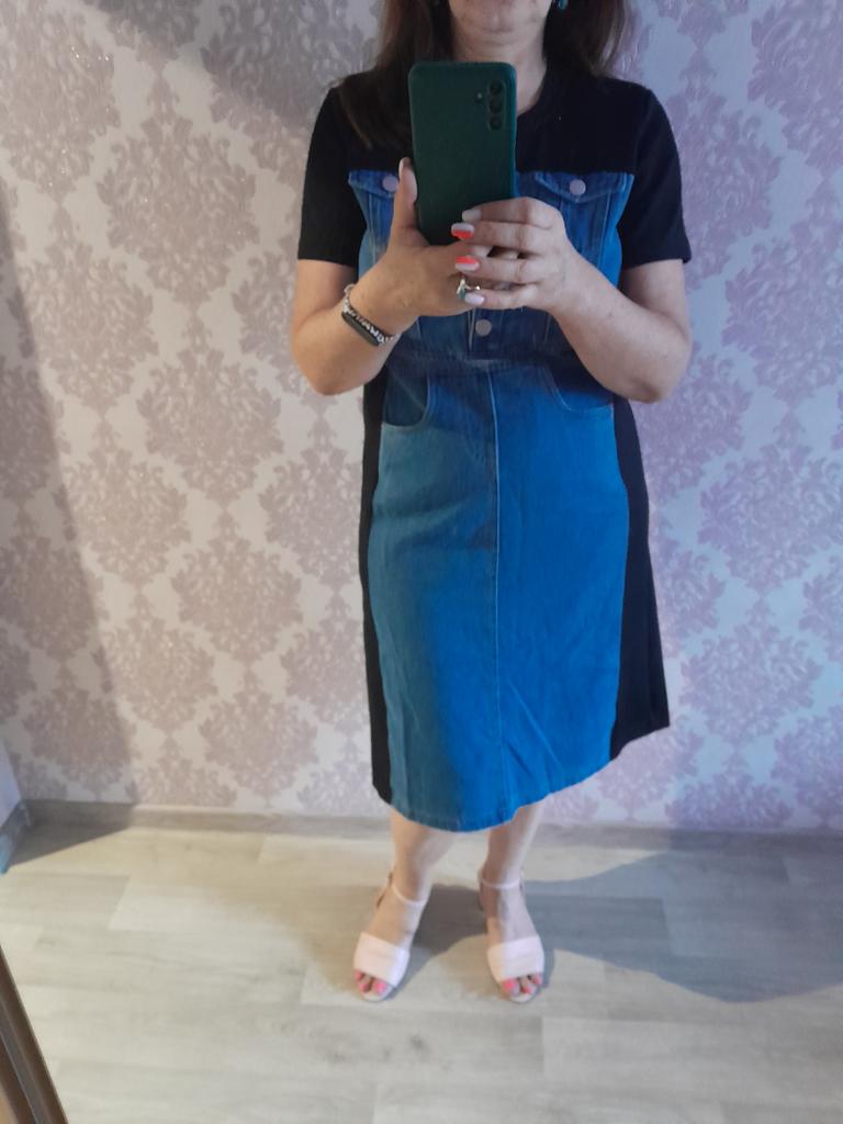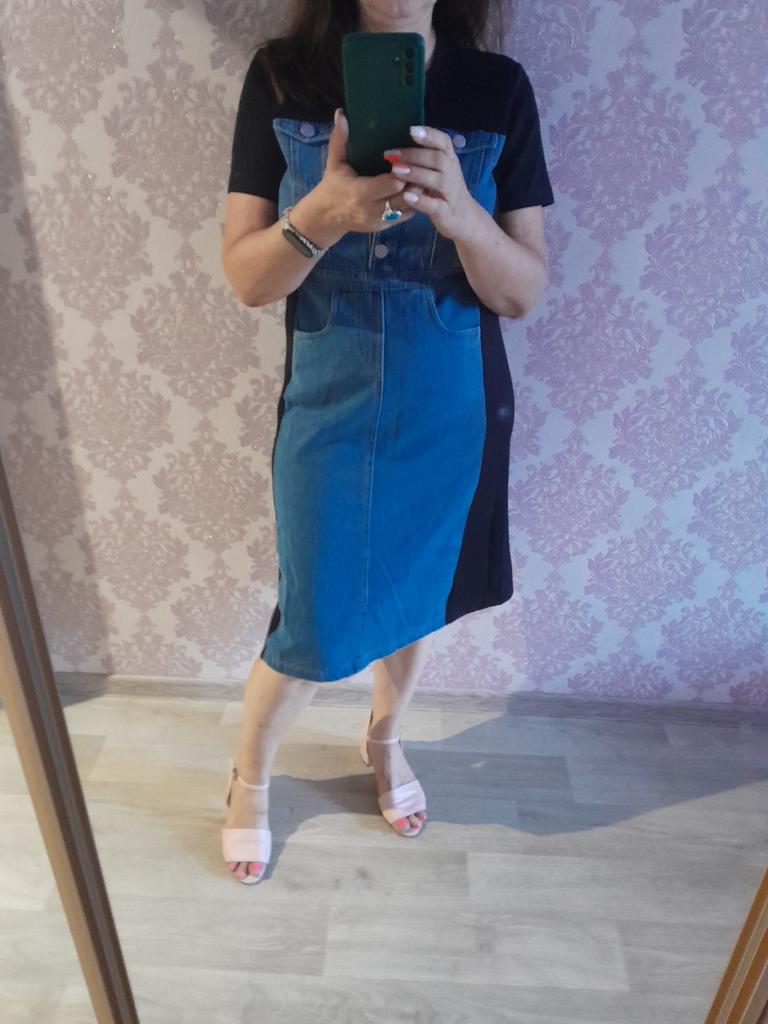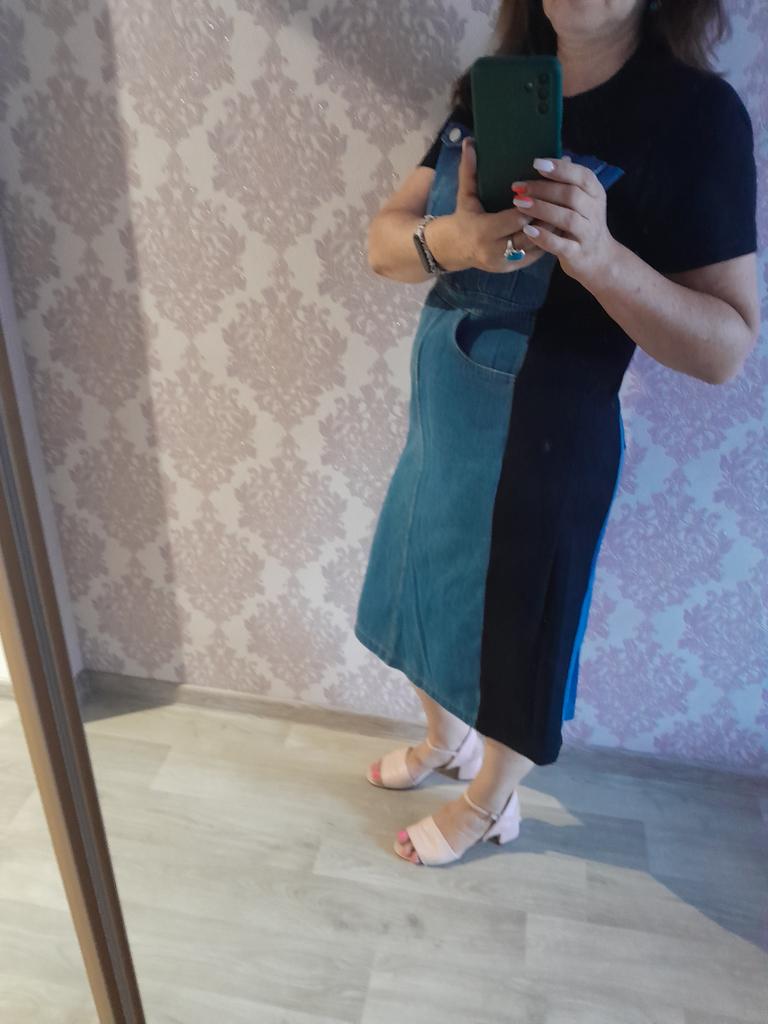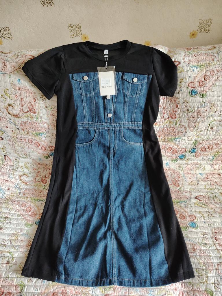 New Trendy Casual Dress Women's Contrast Vintage Denim Panel Short Sleeve Slim Fit Pencil Dress