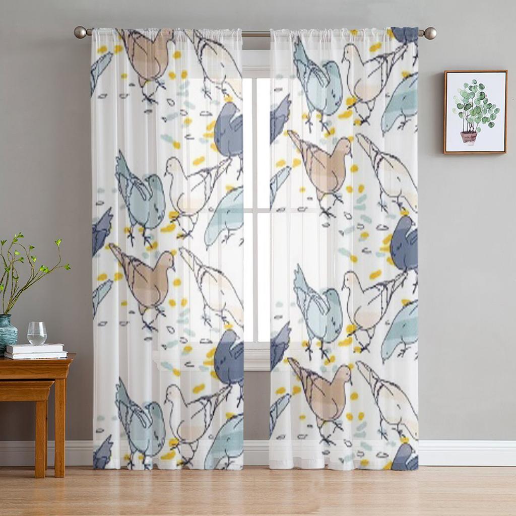 Pigeons Colorful Abstract Geometric Shapes Chiffon Sheer Curtains for Living Room Bedroom Window Curtain Voiles Tulle Cortinas