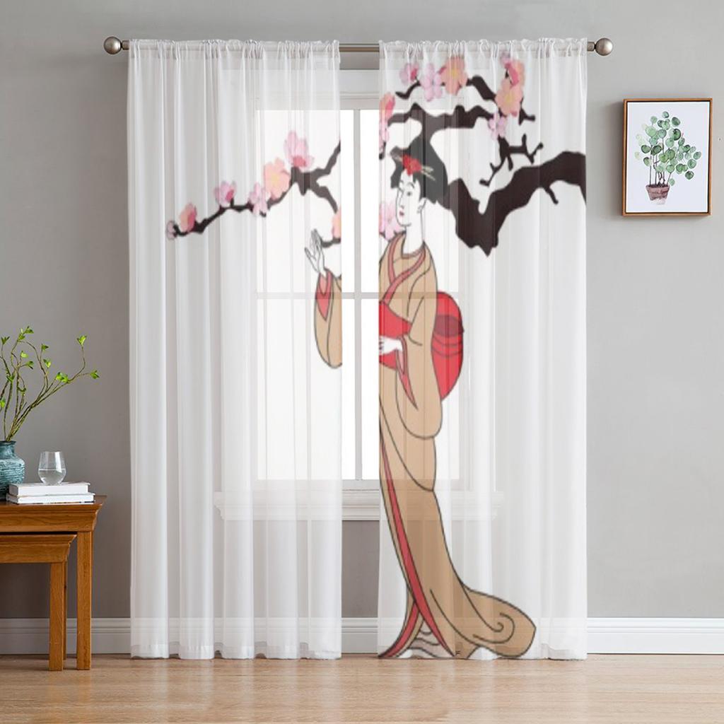 Japan Girl Sheer Curtains for Living Room Transparent Tulle Window Treatments Bedroom Kitchen Home Decor Veil Drapes