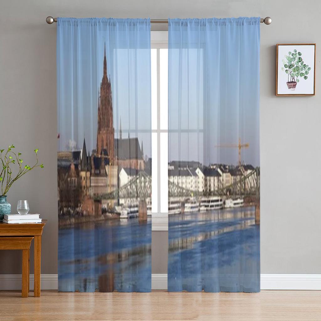 Old Historic Bridge Eiserner Steg In Frankfurt Am Main Germany Sheer Curtains for Room Bedroom Window Voiles Tulle Curtain