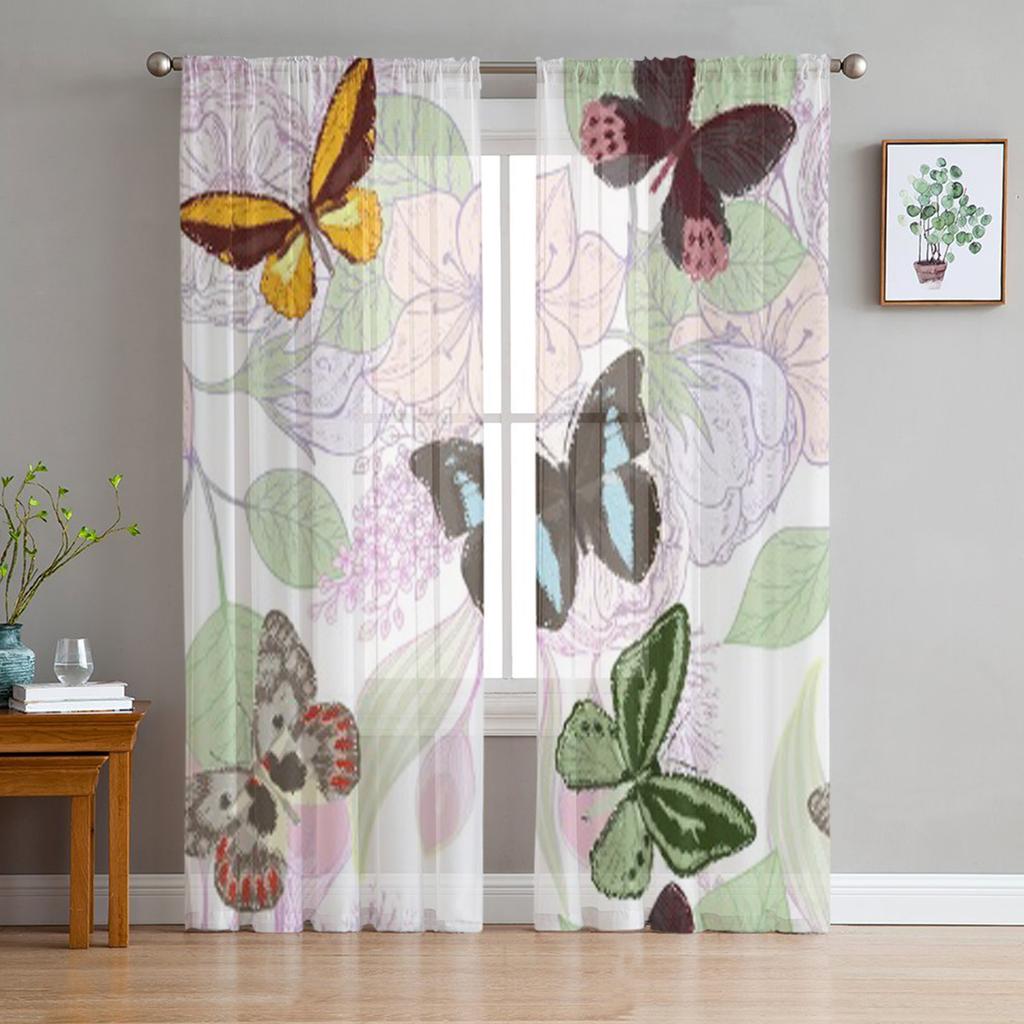 Flowers And Butterflies Tulle Sheer Curtains for Living Room the Room Bedroom Kitchen Decoration Voile Organza Curtains