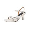 Krazing Pot Full Grain Leather Peep Toe Stiletto High Heels Crystal Beading Summer Shoes Size 44 Size 43 Women Luxury Sandals