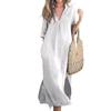 Style: Embrace elegance and style with this women's V-neck dress featuring a chic three-quarter sleeve design and a flattering loose fit that accentuates your figure effortlessly. The slit detail adds a touch of sophistication to the overall look, making it perfect for various occasions.