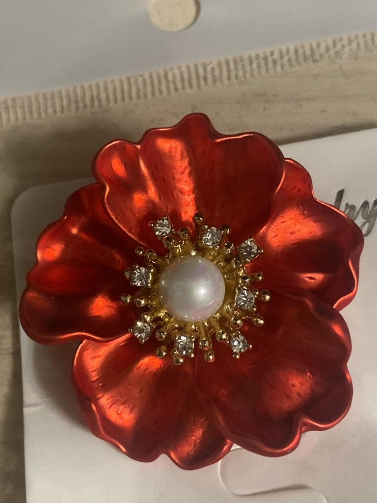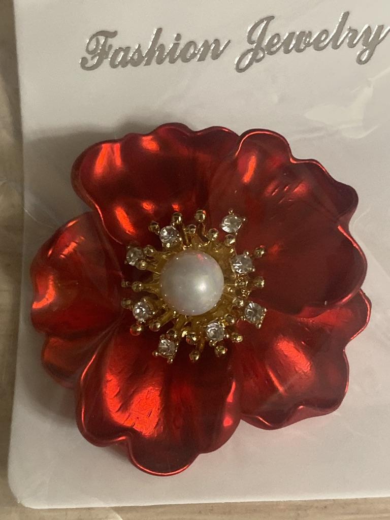 Women Brooch Peony Faux Pearl Decor Anti-slip Shoulder Bag Suit Coat Collar Hat Scarf