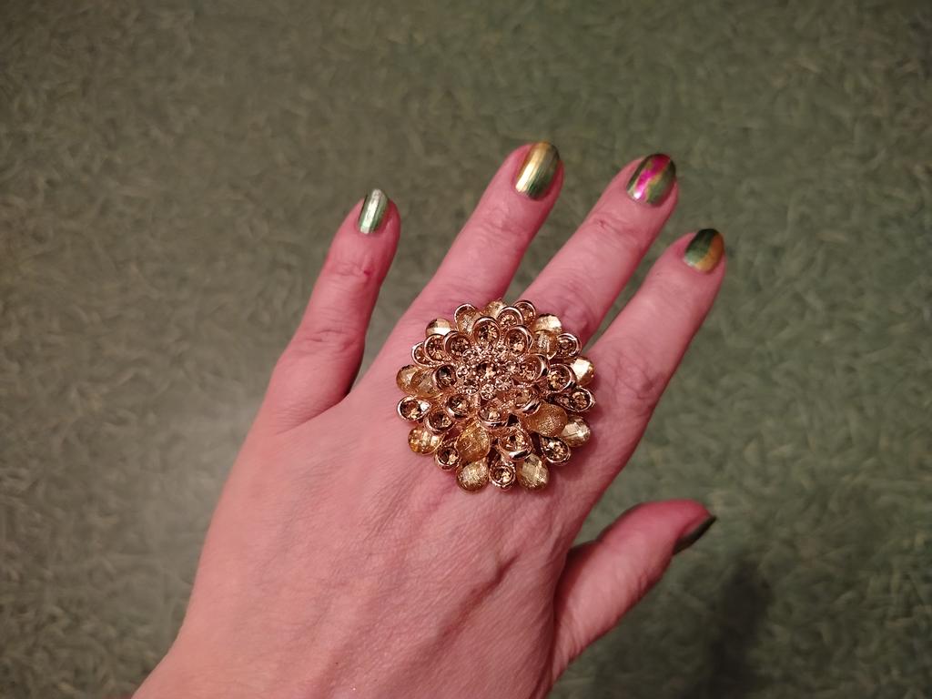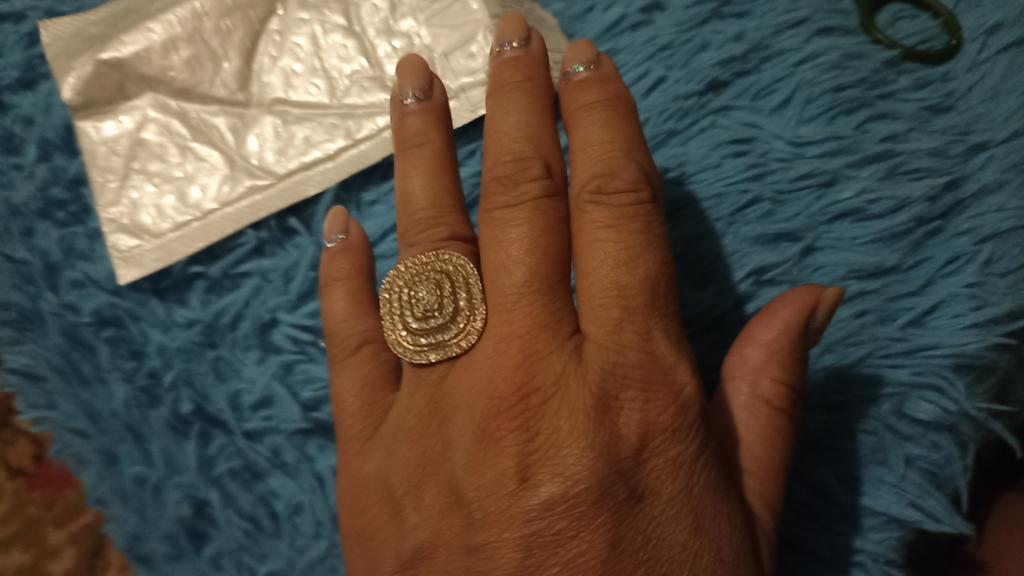 The ring is amazing, I already have a collection: white, red, blue, green, and I want a black one too. I adore big rings.