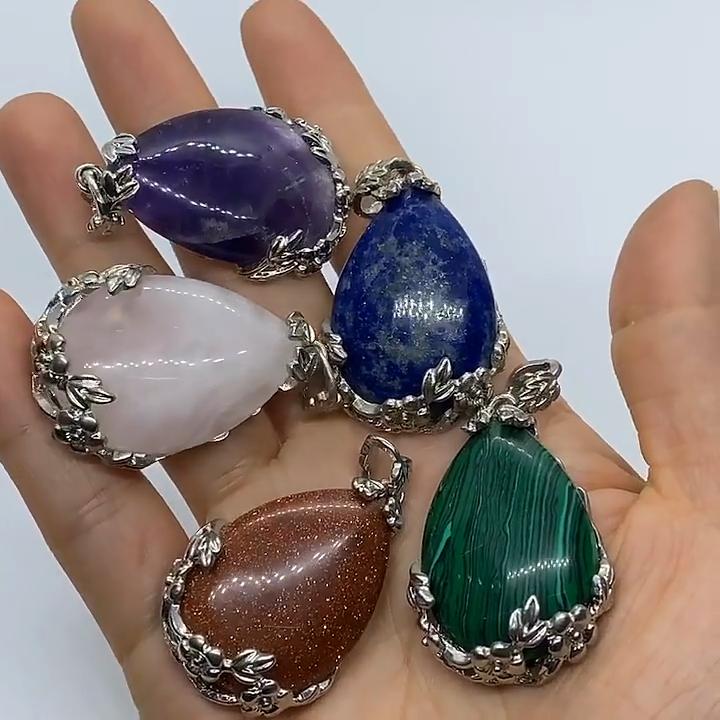 1Pc Natural Stone Pendant,Teardrop Rose Quartz Turquoise Opal Golden Sandstone Tiger Eye Amethyst Gemstone Charms for DIY Jewelry Women Gifts 30x40 Mm