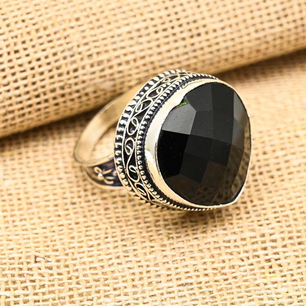 Black Spinel Gemstone Handmade 925 Sterling Silver Heart Shape Jewelry Vintage Ring For Wedding Gift