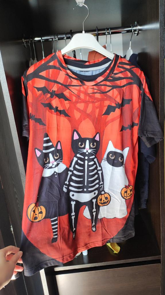 Plus Size Women T-Shirt Halloween Cats Print Female Clothing Fashion Summer Short Sleeve Tops Casual O-Neck Tees Ladies Pullover