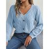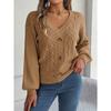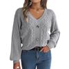 Autumn and Winter Casual Button Twist Lantern Sleeve Pullover Sweater