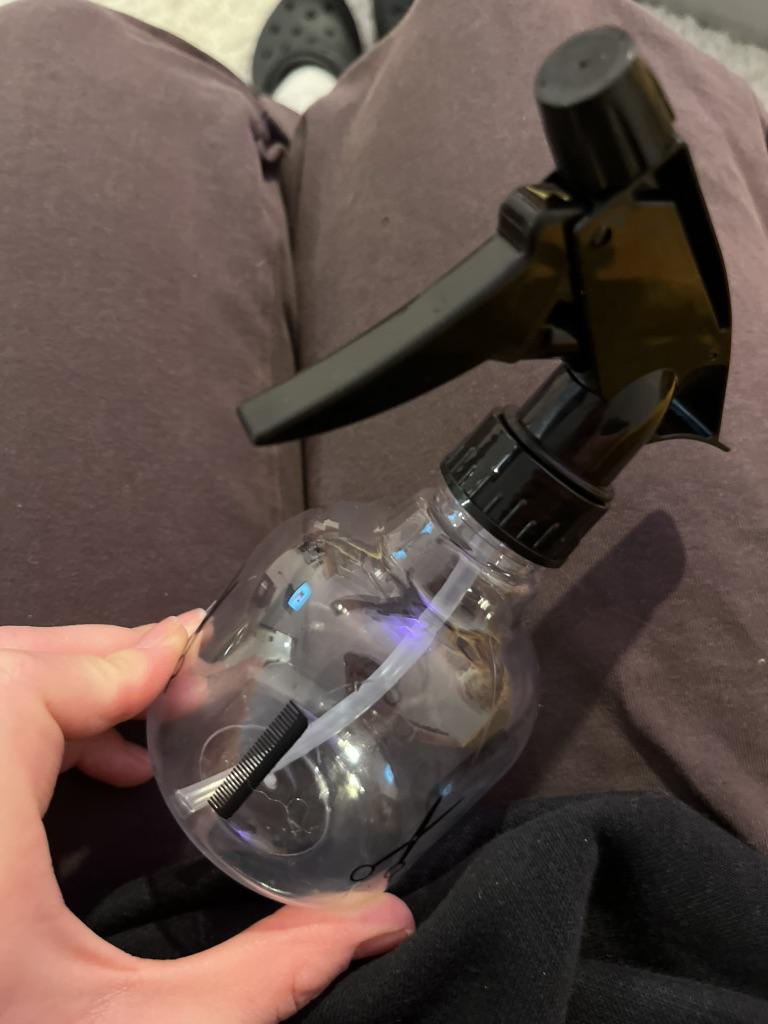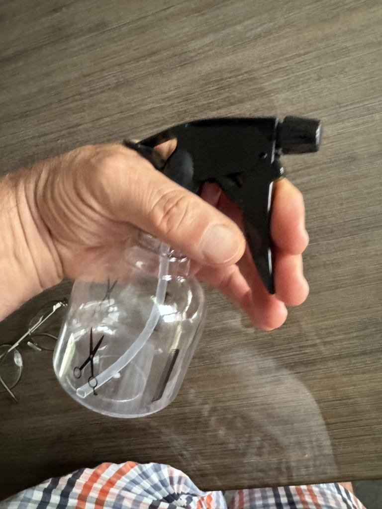 Hair spray Volume 250 ml Made from thick plastic Without smell Works properly Sprays with a single jet or a strong fine spray depending on the setting I use it for flowers and hair 👌