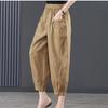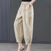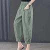Summer Casual Cotton Linen Pants Women Retro Pockets Loose Harem Pants Woman Solid Elastic Waist Trousers Female