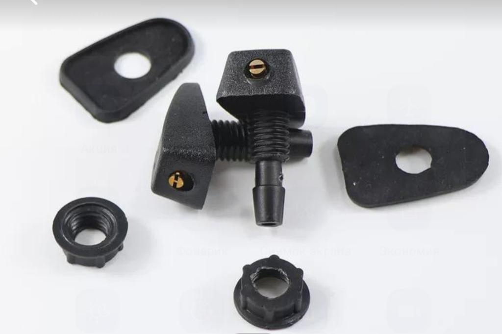 The original nozzle was attached differently, there is a rectangular hole in the hood for it (somewhere around 4x10mm). But the wide nut holds this nozzle in the hole securely. The amount of antifreeze ejected through the nozzle can be adjusted