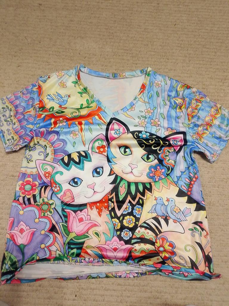 New Women T-shirt Cartoon Cat Print Plus Size Top Summer Women's Trend Clothing Fashion Short Sleeve Shirt V-Neck Harajuku