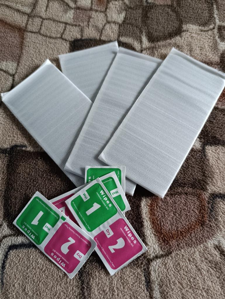 The protective glass came in a box, well packaged. There are 4 units in the set. I haven't tried them.