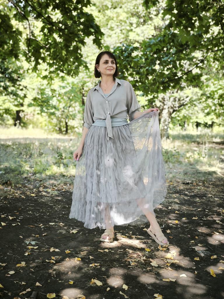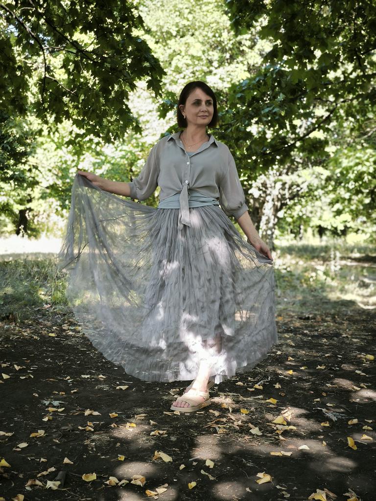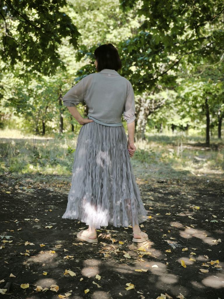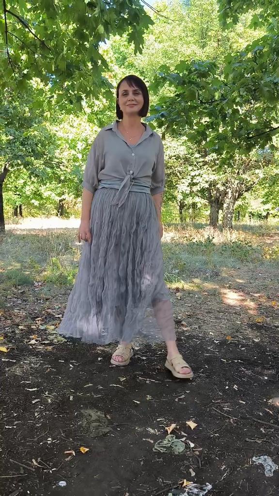 Qooth Women Casual Ruffle Design Layered Tulle Skirt Tulle Maxi Skirt Fashion High Elastic Waist Midi Tutu Mesh A-line Skirt QT2350