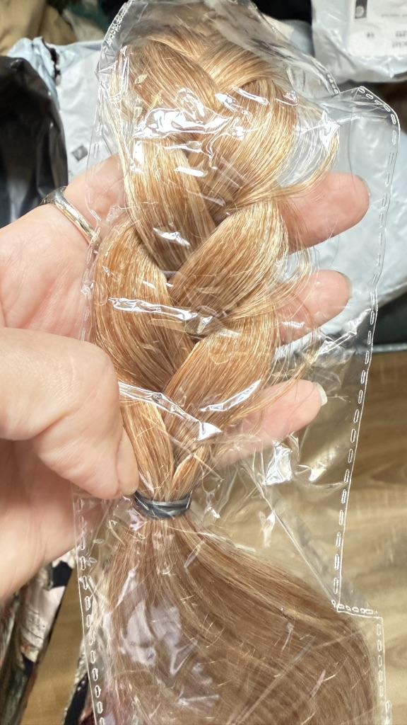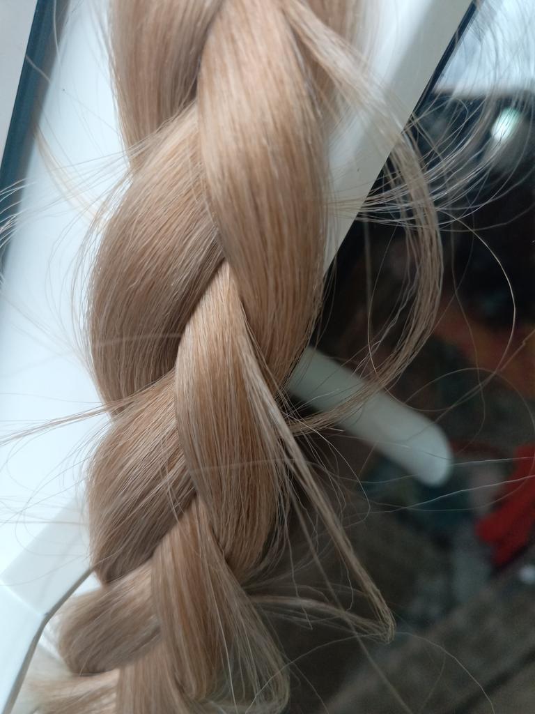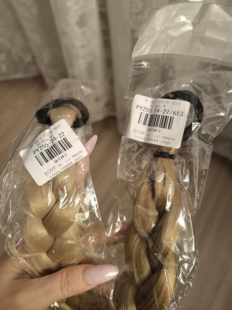 I'm adding to my review of the product: I had to unbraid the braid to weave my own hair, it's not that easy to do it myself, so we got tangled up. I don't understand why they put in black elastic bands for light-colored braids? I'm adding: it's problematic to comb, everything gets caught.