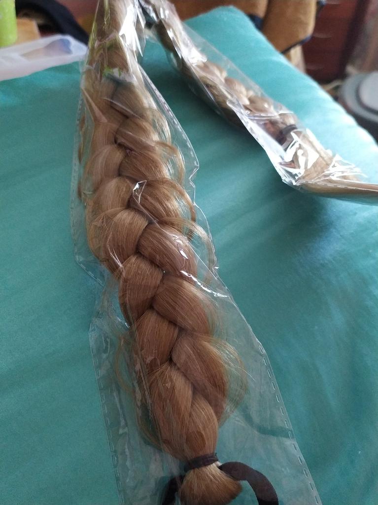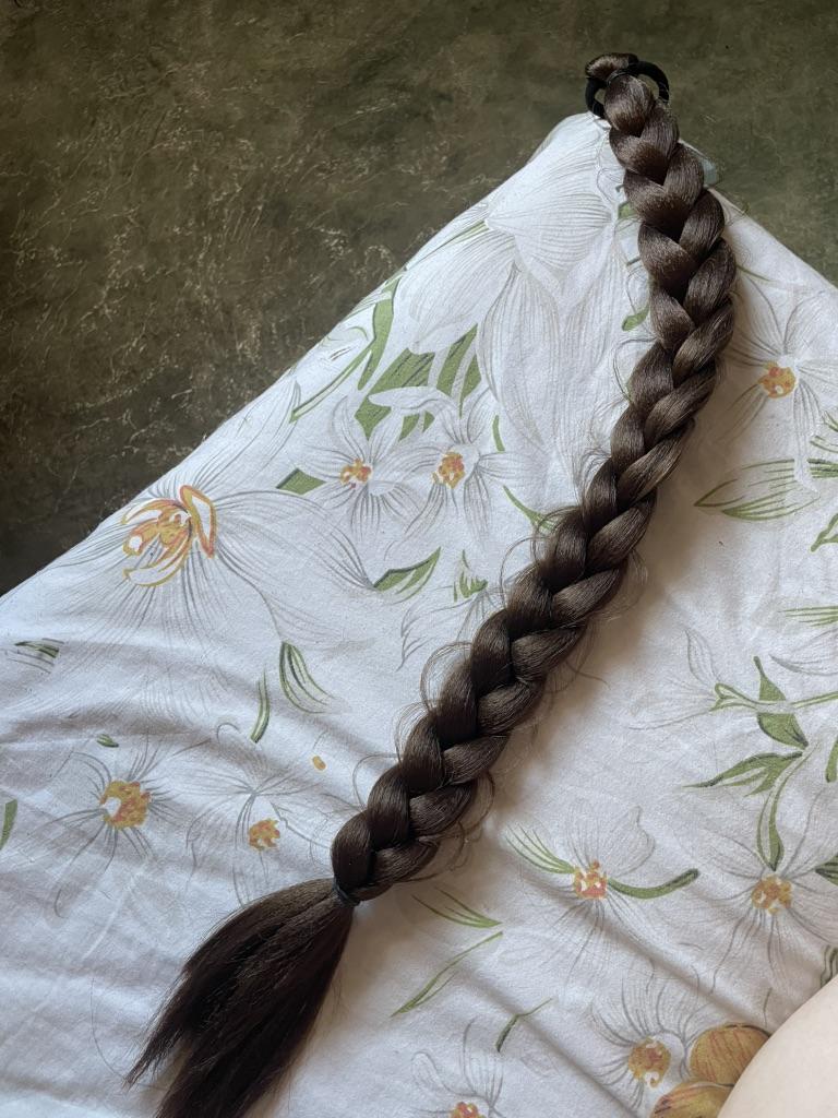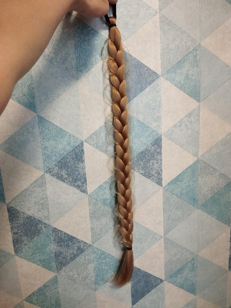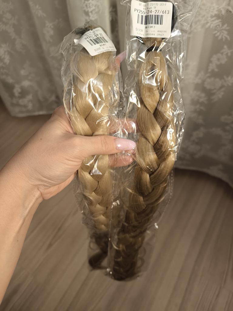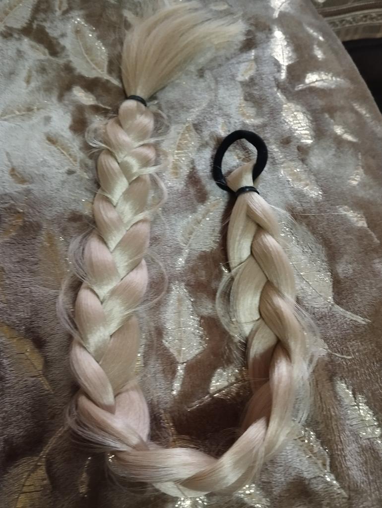Beautiful braid. Long braid! Better to buy two, to attach with hairpins on the right and left
