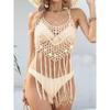 Beach Dress Summer Women's Sequins Patchwork Pure Hand Hooked Halter Dress Holiday Fringe Bikini Cover Up