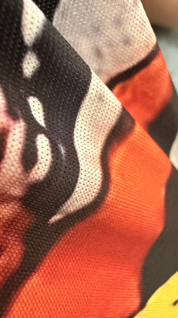 The t-shirt arrived defective, the print on the upper part of the t-shirt has black spots in some places the print is smeared, I cannot give a good rating