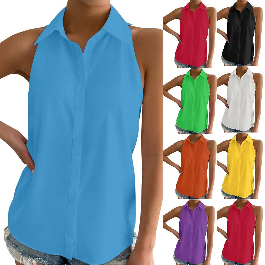 Women's Button Up Shirt Sleeveless Basic Casual Solid Color Summer Shirt Top