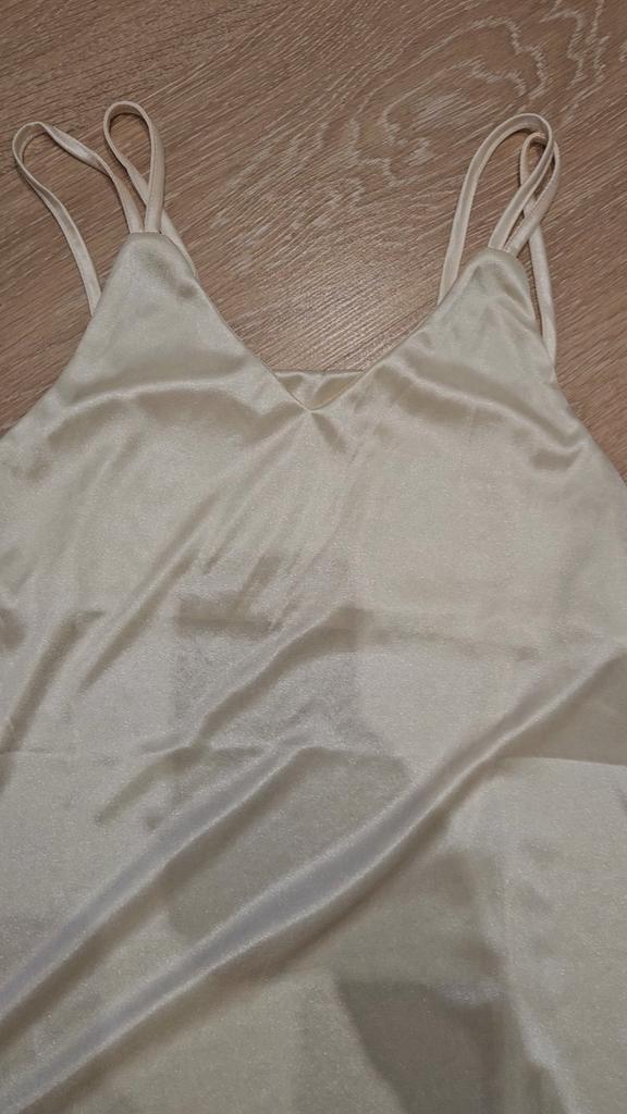 I've been looking for a top like this for a long time. The fabric is like satin, two comfortable straps that don't fall off the shoulder. Size 48-50. Thank you!
