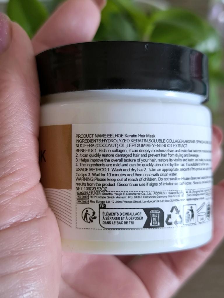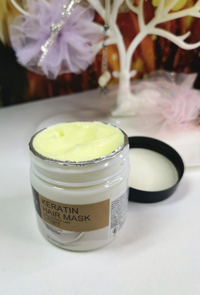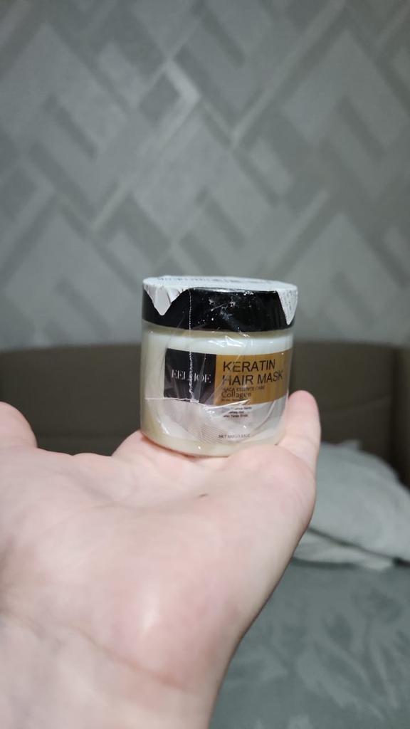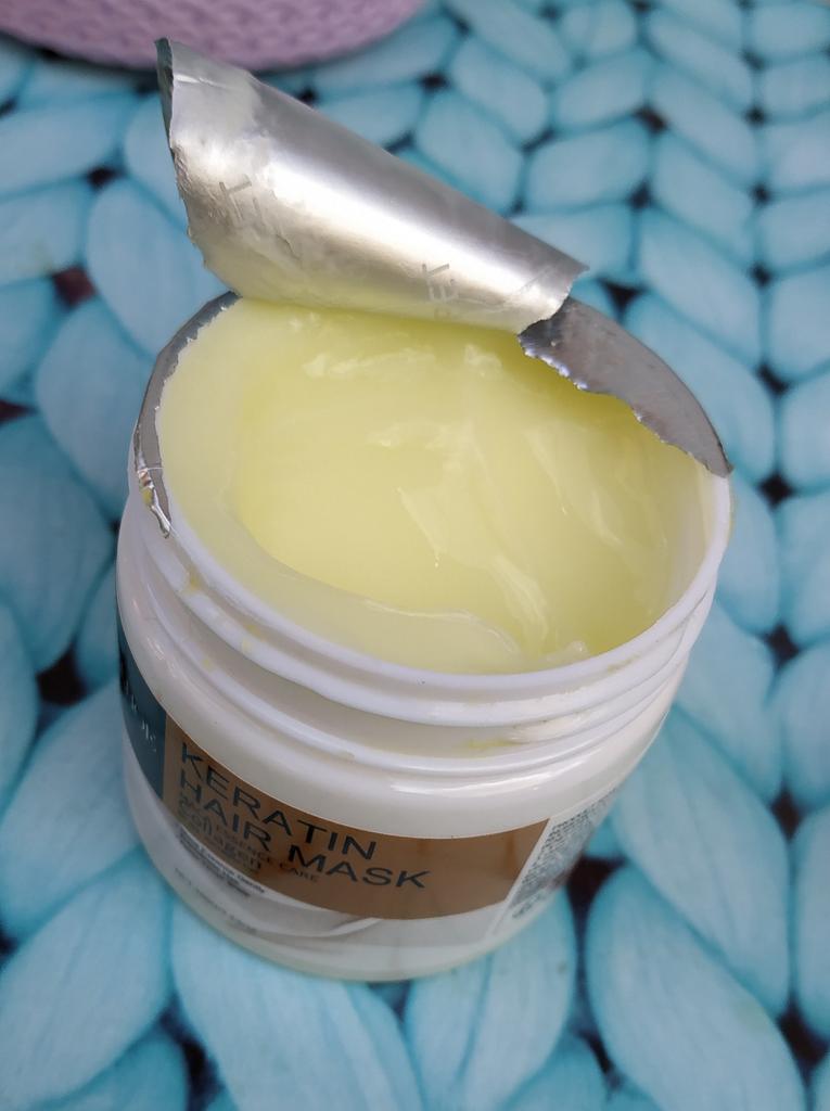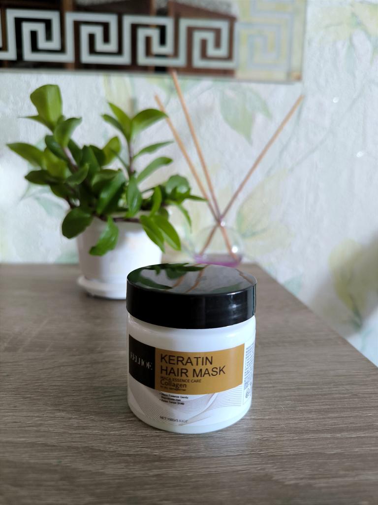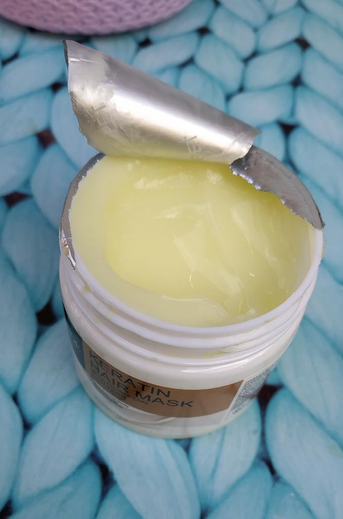 Hair mask with keratin effect Apply to washed, damp hair ends and along the entire length, rinse off after 10 minutes. The mask contains natural and artificial components. The smell is pleasant, not strong The consistency is thick, the mask fits easily on the hair and is easy to spread.. After it, the hair becomes less frizzy, smooth and shiny. It seems to me even more durable. Jar volume 100 g