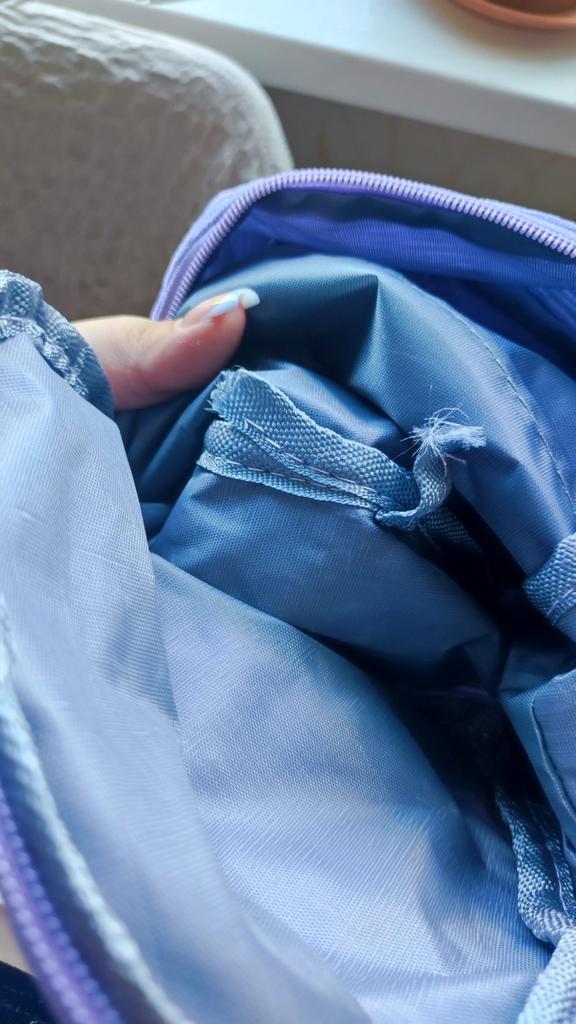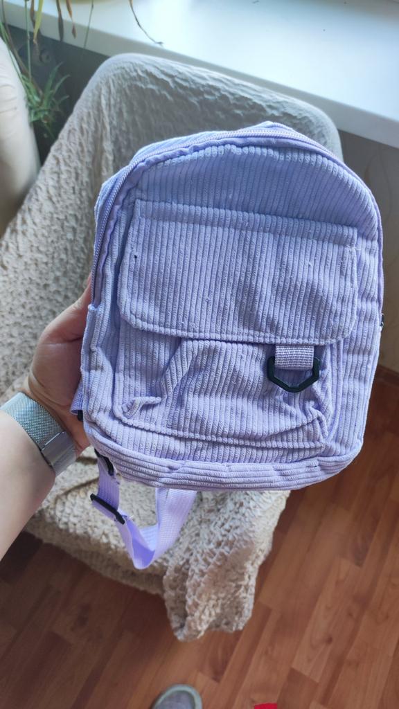 It arrived all covered in some kind of debris, needs cleaning. There are crooked seams and unevenness inside the product. Not very neat. The zipper is good, the color matches the description. The straps have plastic carabiners, so it's better not to carry anything heavy in it. -1 star for quality