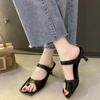 Fhanchu Women High Heeled Sandals ,Fashion Summer Shoes ,Flip Flop ,Square Toe ,Black ,White ,Yellow ,Dropship