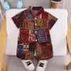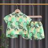Children's Summer Full Print Leaf Flower Standing Neck Shirt Short Sleeve Set