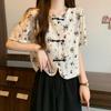 Chiffon Short Sleeve Summer Shirts Women Chinese Style Floral Embroidery Fashion Ladies Blouses Loose Woman Shirts Tops
