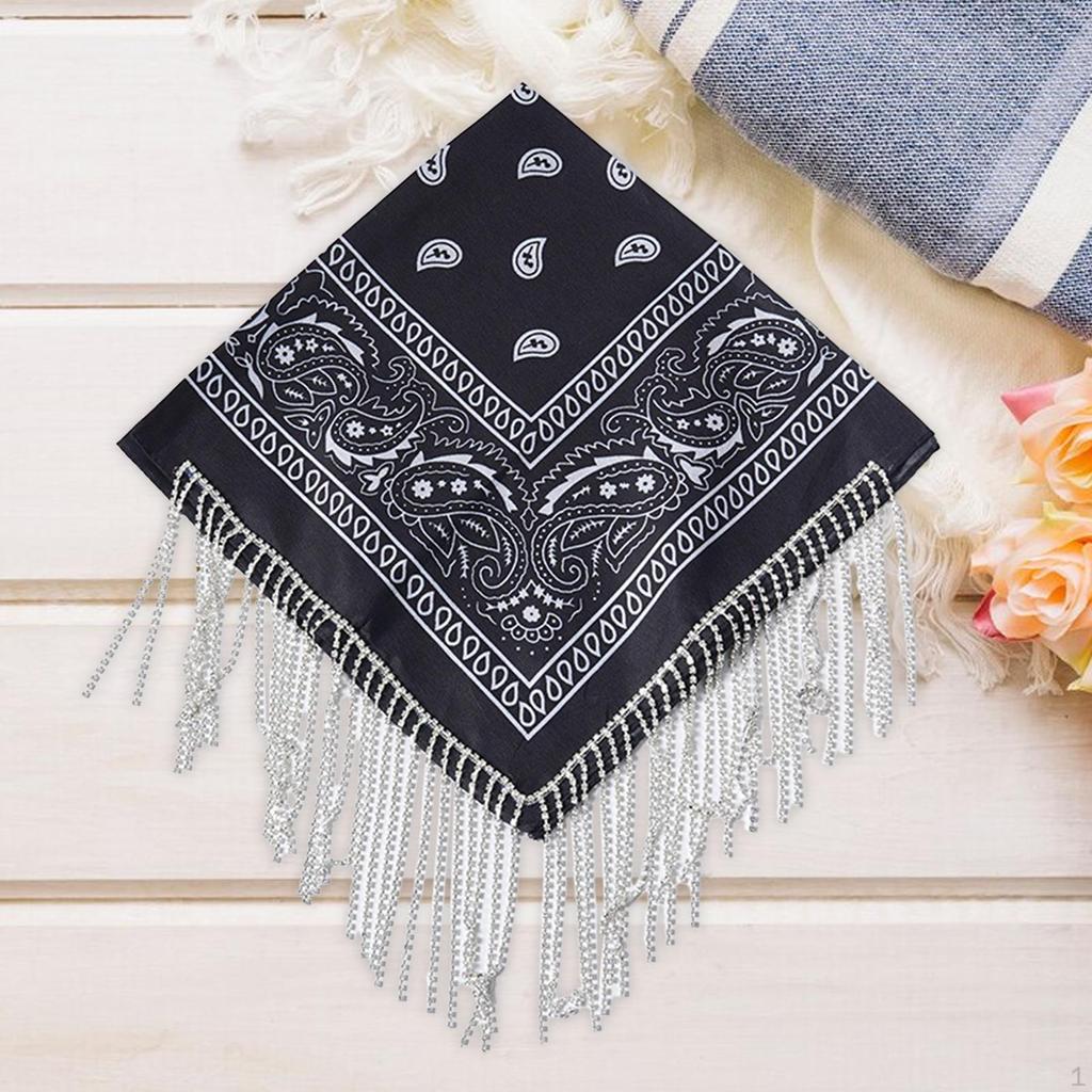 - 【Tassel Party Bandana】Disco Party Rhinestone Tassel Bandana is a versatile accessory that can be used as a headband, handkerchief, scarf, or bandana.