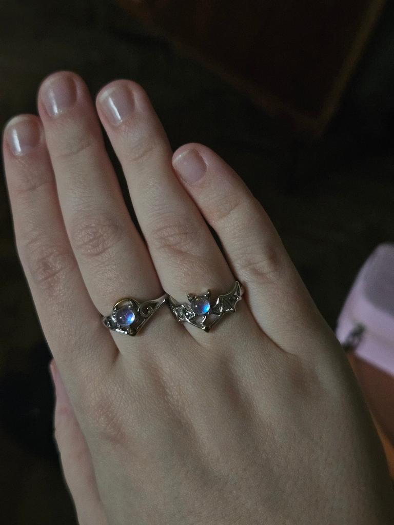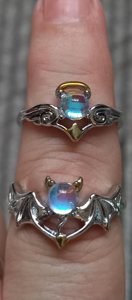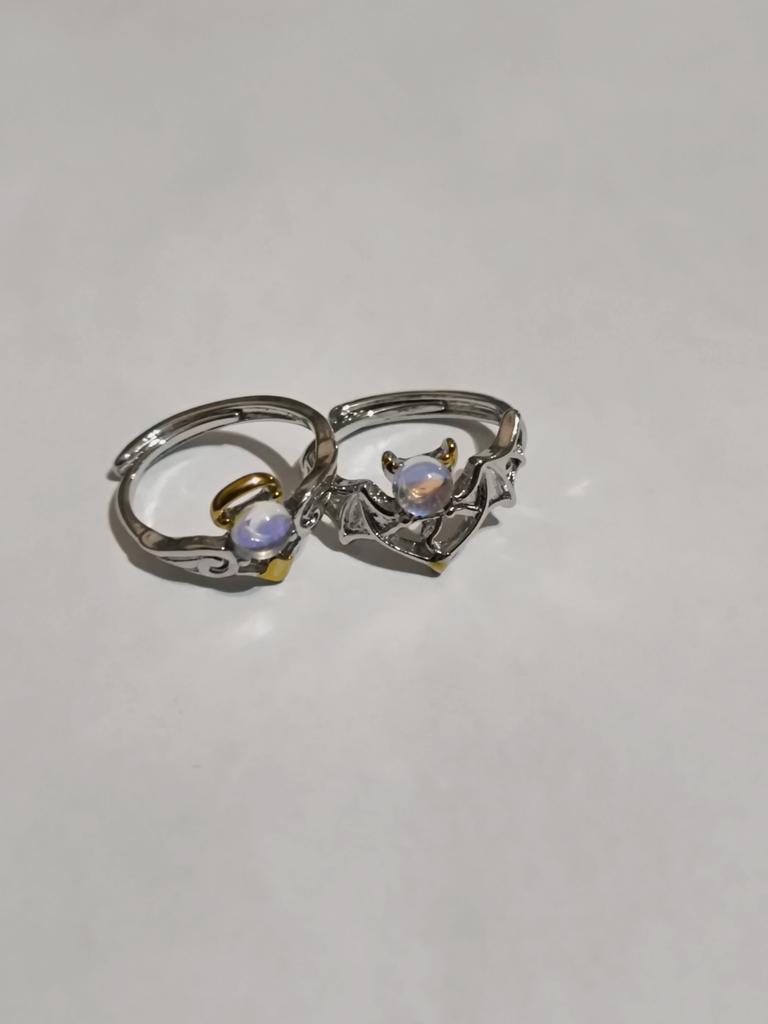 A Pair Couple Rings Angel Devil Moonstone Ring for Women Men Opening Adjustable Lovers Ring Jewelry Gift