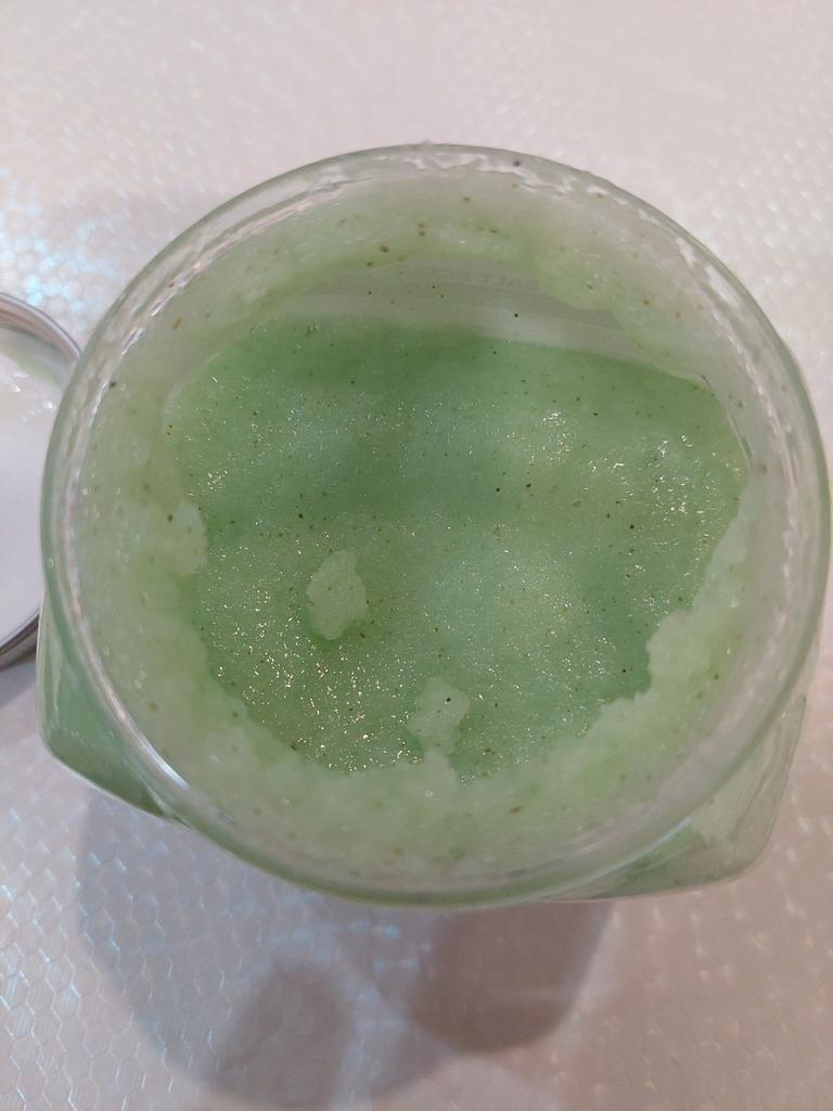 The scrub smells soft, but there is nothing similar to mango. The scrub particles are small and runny.