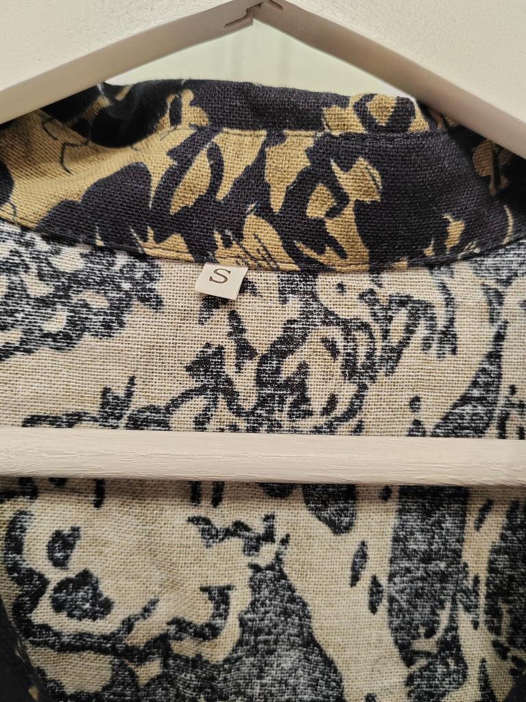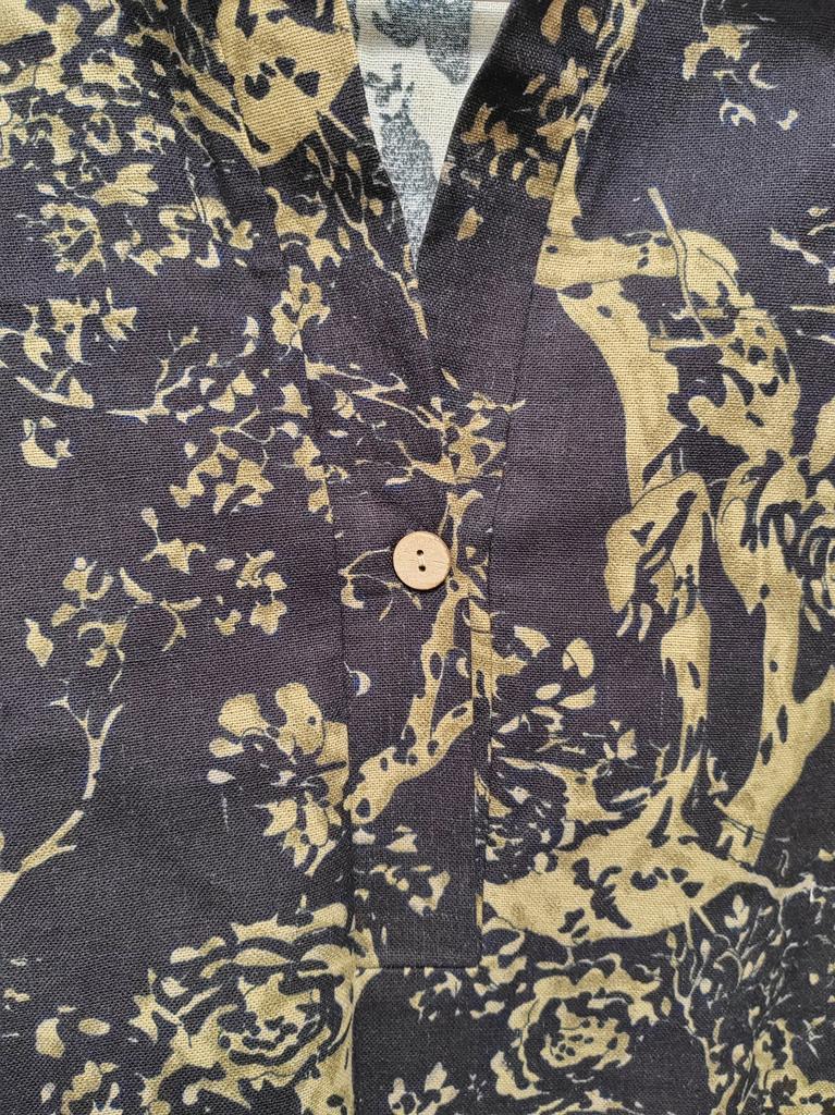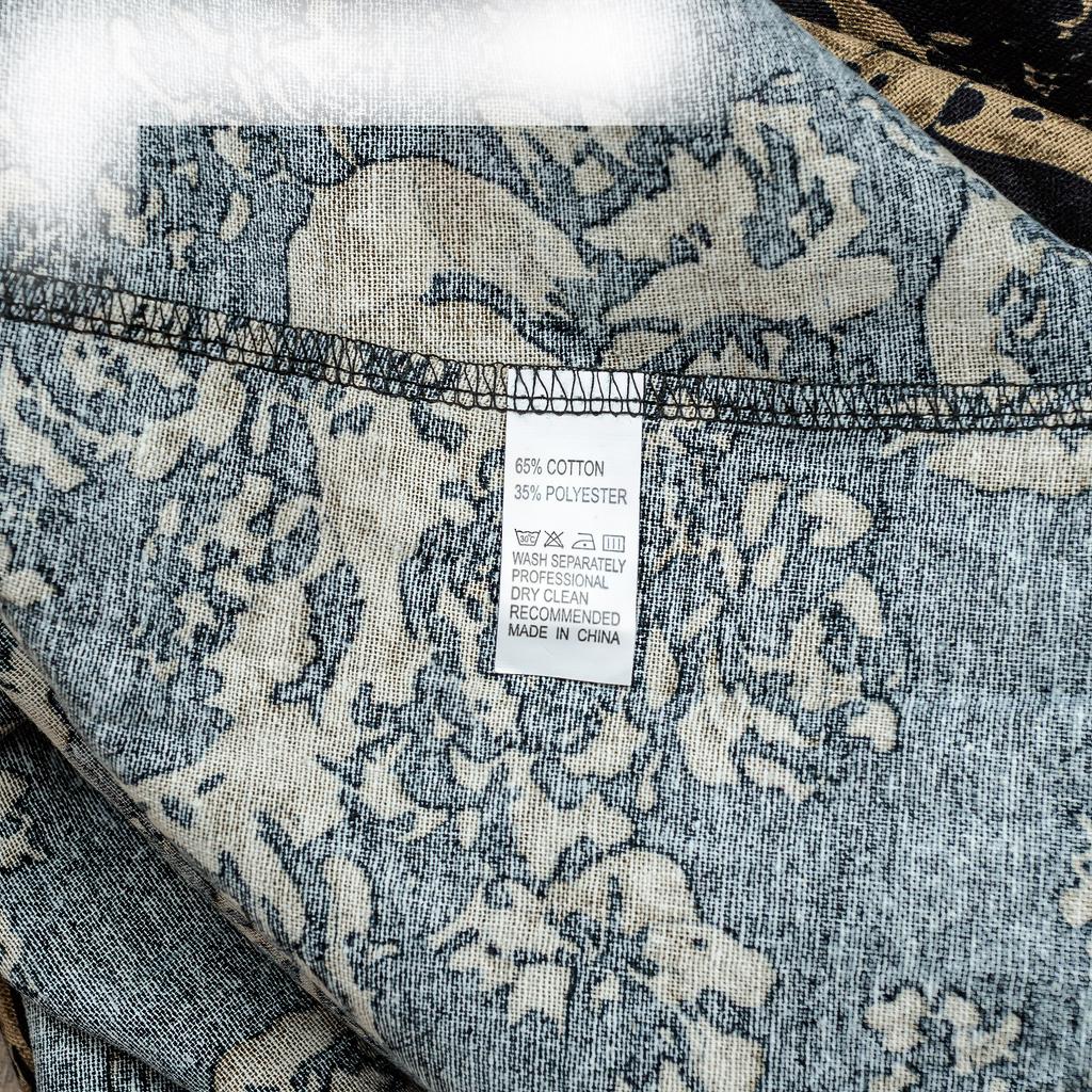The label says 35 percent polyester. Although it feels like cotton. My grandmother would call such material staple. But otherwise, I really like the style and everything.