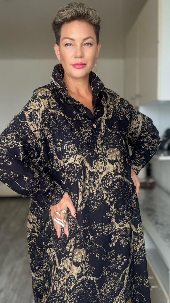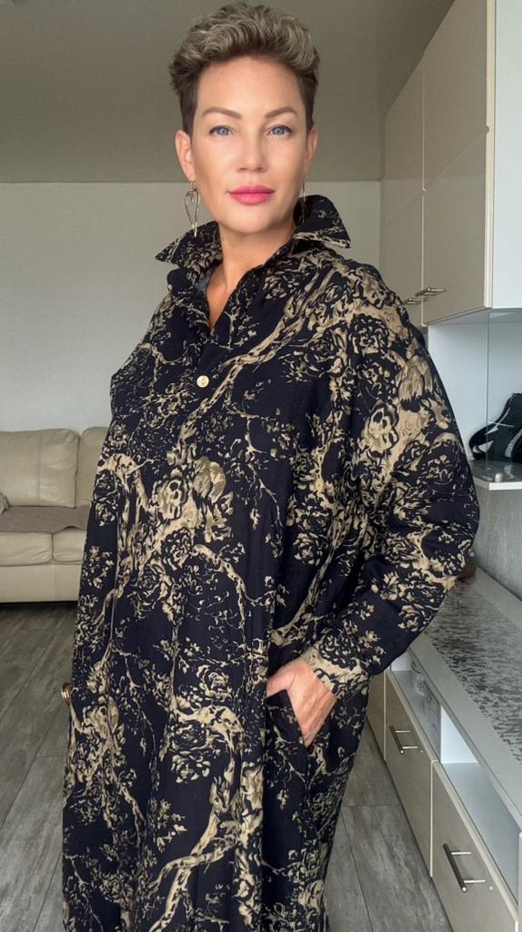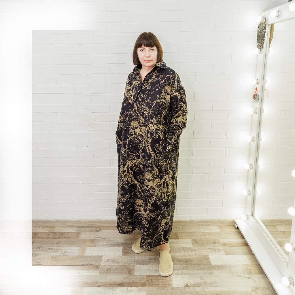 The dress does not correspond to the one presented at all. In reality, it is made of very thin fabric, a slightly trapezoidal babashka dress.
