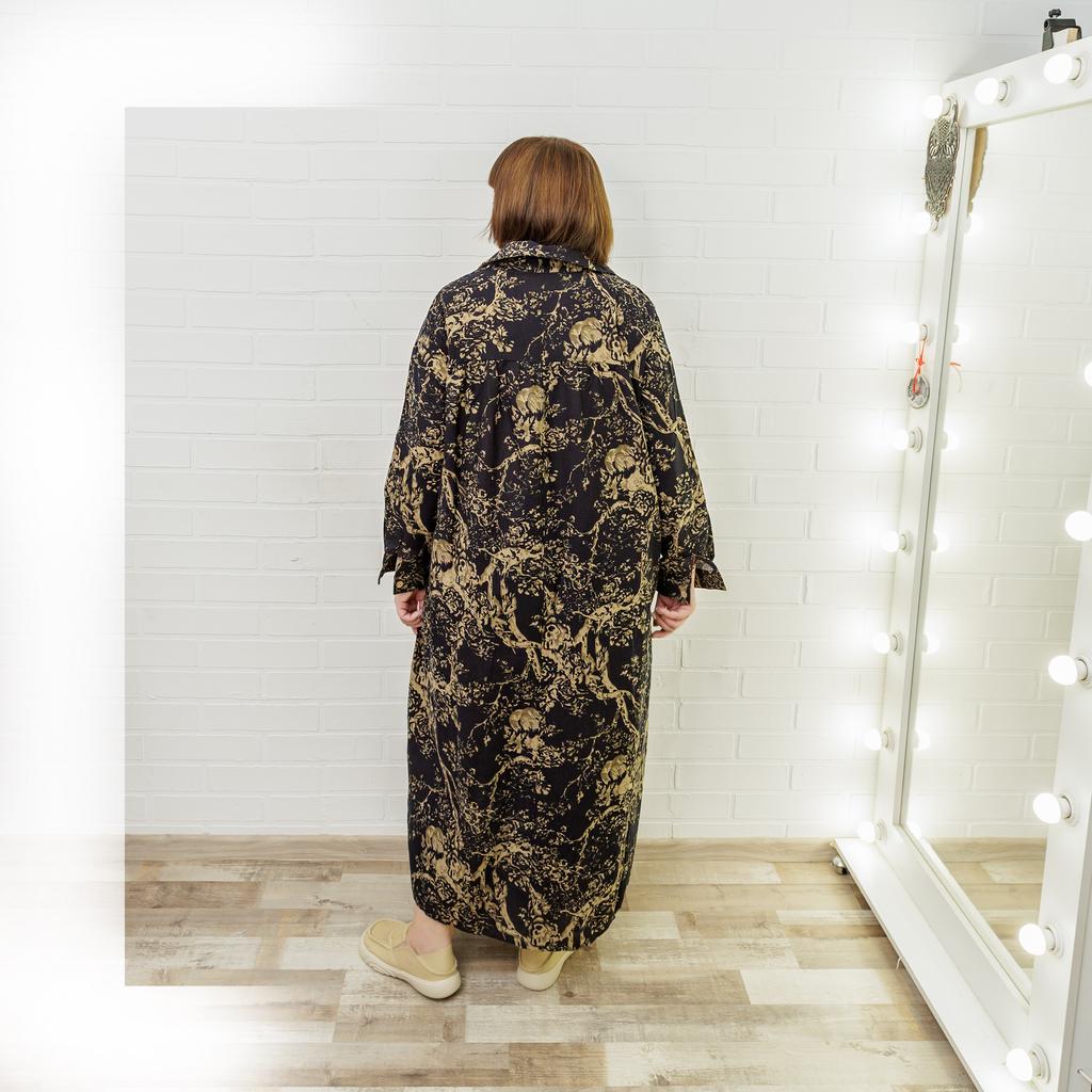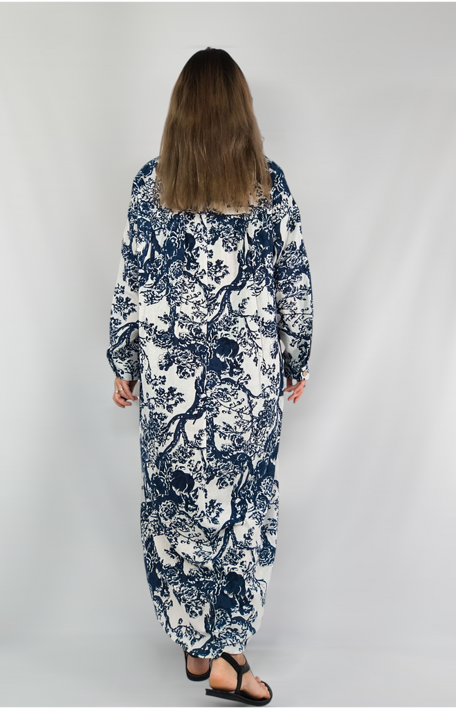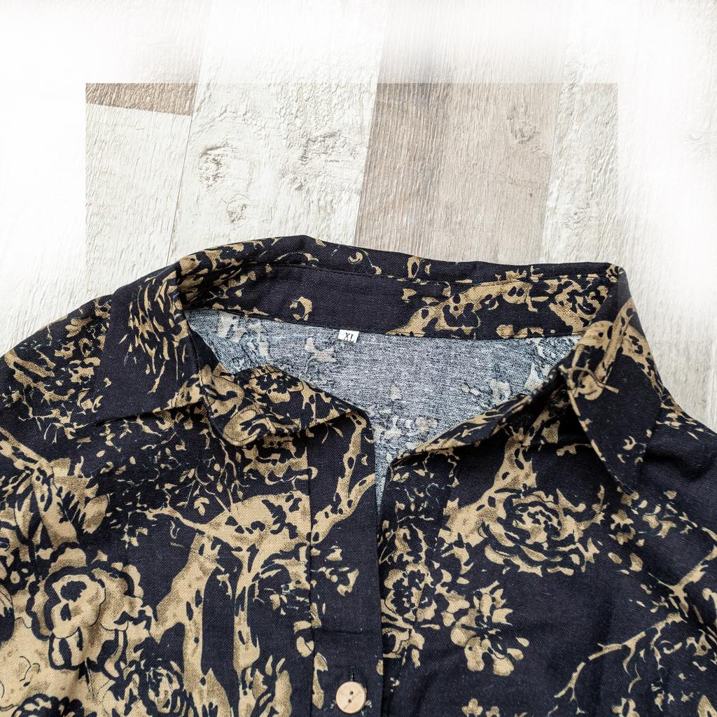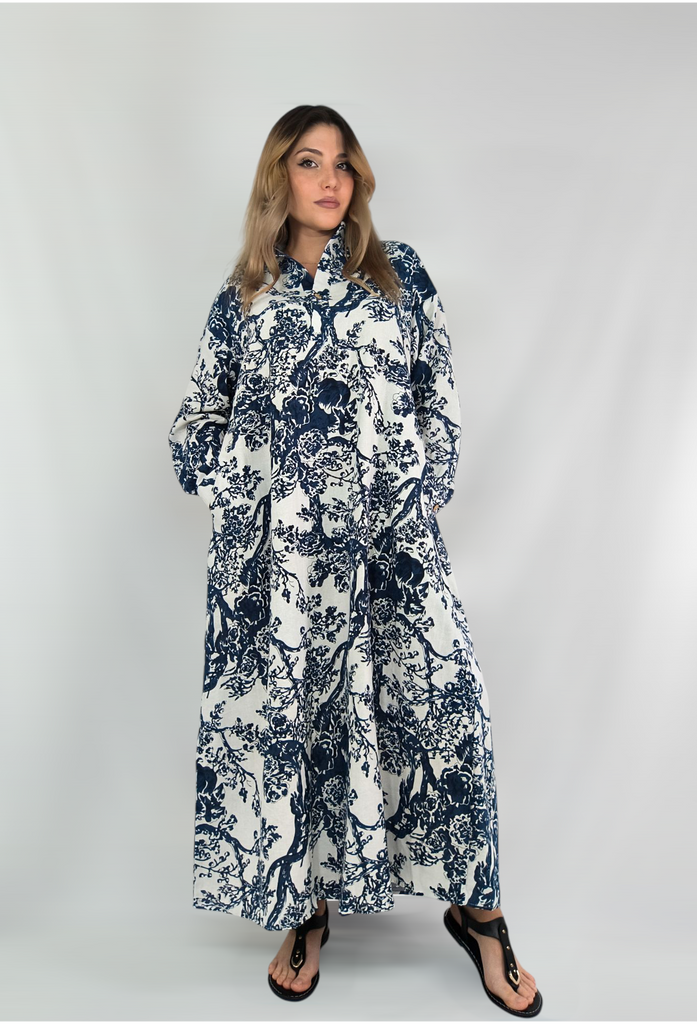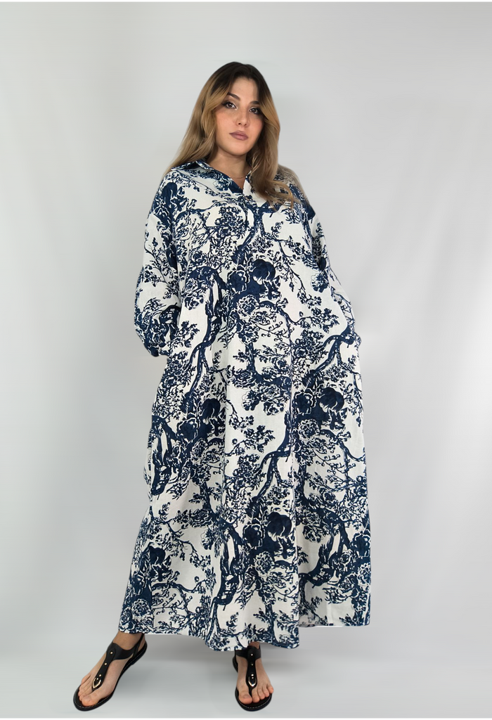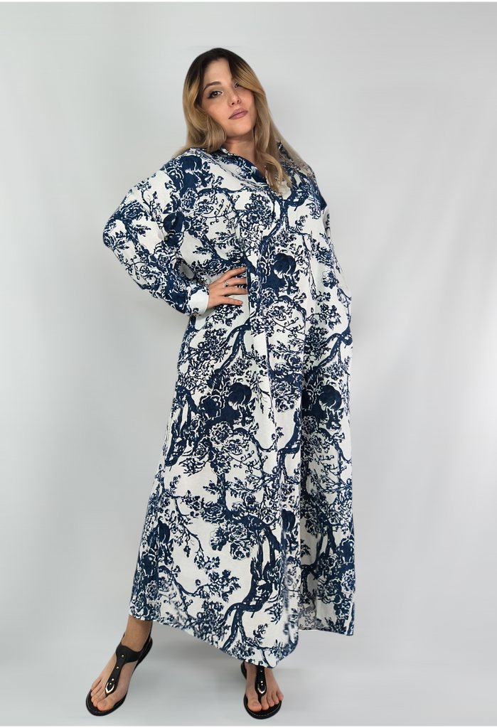 Plus Size Women's Spring and Autumn Printing Cotton Linen Dress Vintage Ethnic Style Clothes Loose Long-sleeved Hem Dress