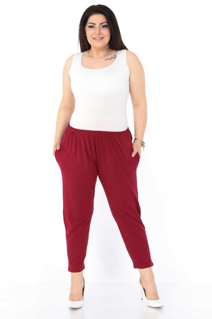 Women's Style Plus Size Pants Burgundy Stretch Trousers