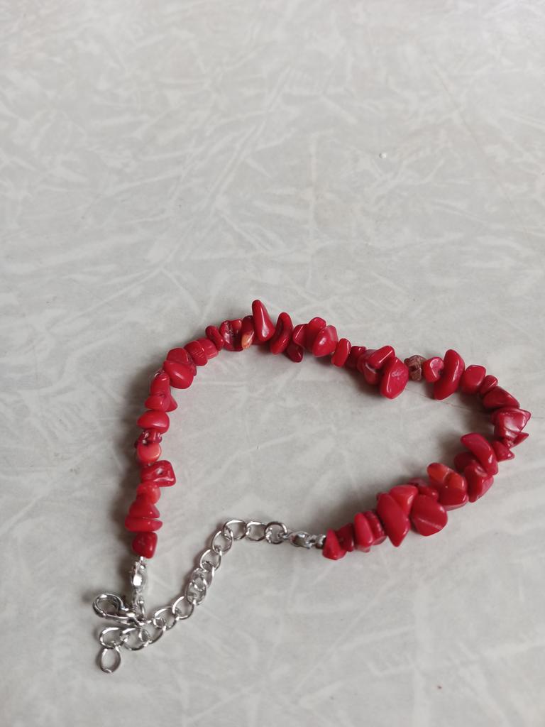 The bracelet seems to be made of natural coral, but it is very red as if it were painted. I ordered 5 different bracelets this time, but they are short.