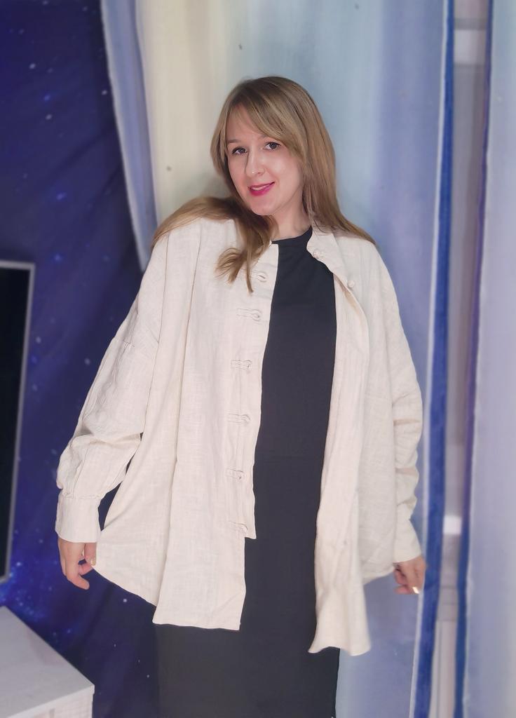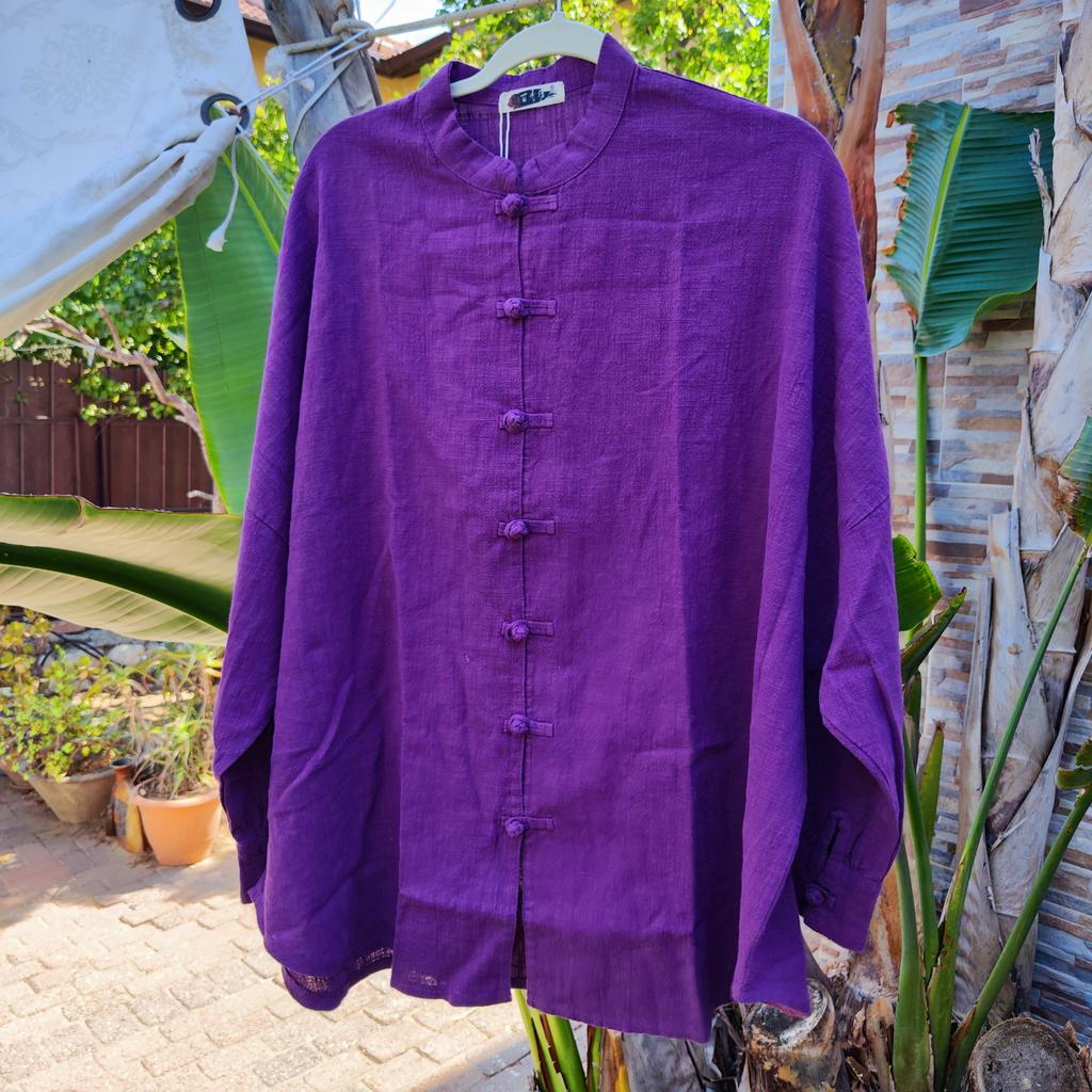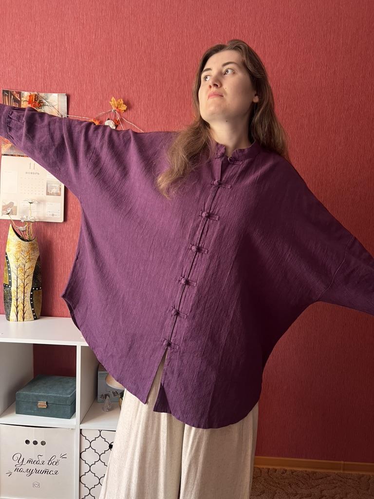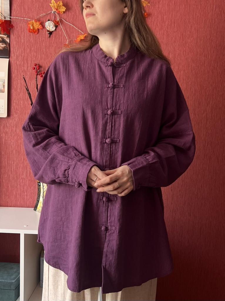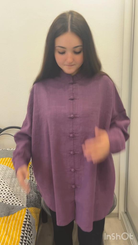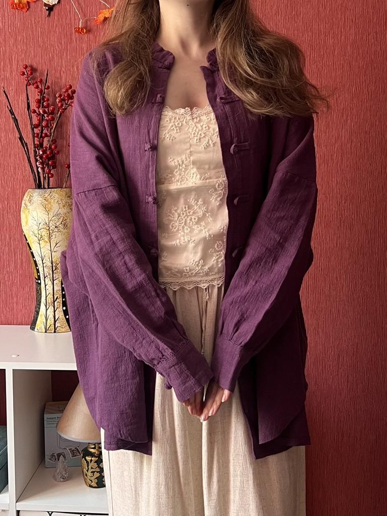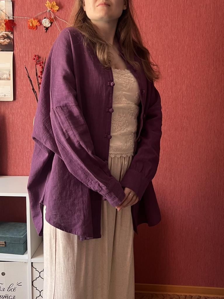 🛍️ Oversized cardigan for women🛍️ ✨This shirt looks so beautiful and has a special style and it's comfortable on the body and I loved them very much!🤩 ✨The shirt is large and wide with a Chinese collar, long sleeves with buttons. The shirt can also be worn open.. . ✨One size can be ordered ✨Suitable for the season: Autumn, Summer, Spring ✨I chose the color purple, I received it exactly in the color I wanted. ✨Available in color: purple, black, coffee, green, yellow, red, white ✨The product arrived with fast and protected delivery. Was the review helpful to you? Like and follow me for more reviews.