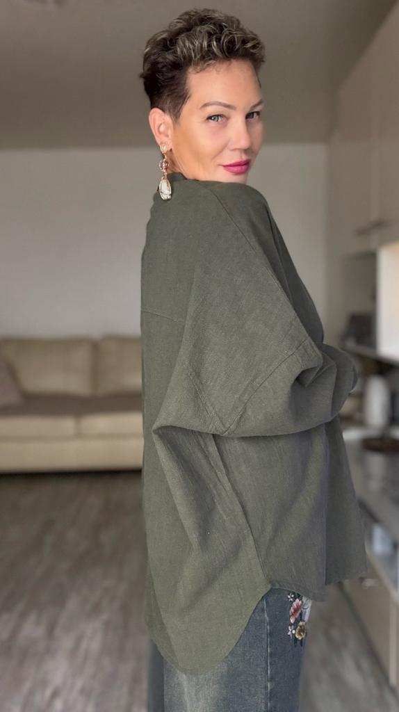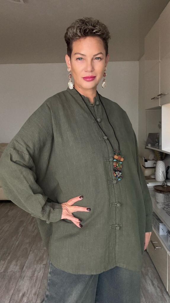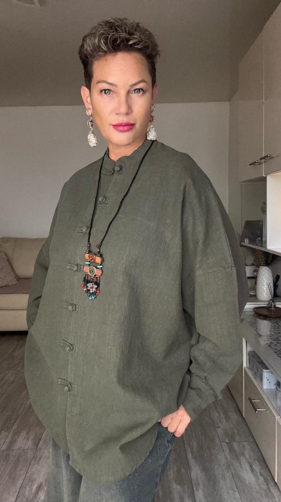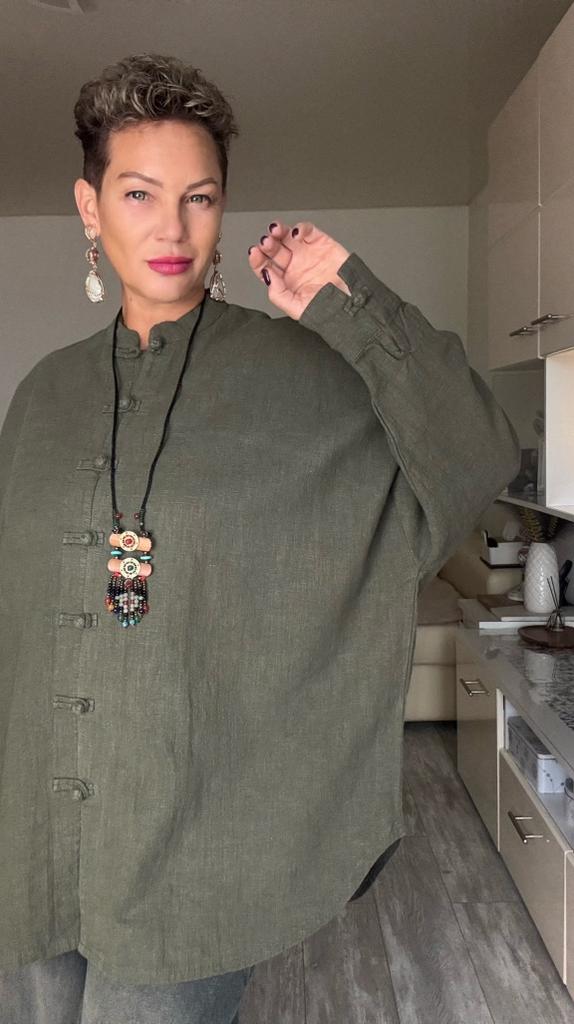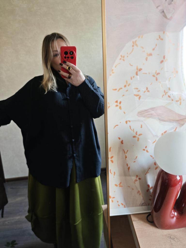 Oversized cardigan for women This shirt looks so beautiful and has a special style and it's comfortable on the body and I loved them very much! The shirt is large and wide with a Chinese collar, long sleeves with buttons. The shirt can also be worn open.. . One size can be ordered Suitable for the season: Autumn, Summer, Spring I chose the color black I received it exactly in the color I wanted. Available in color: purple, black, coffee, green, yellow, red, white Was the review helpful to you? Like and follow me for more reviews.