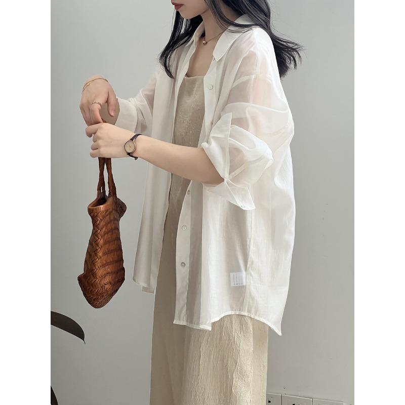 Chinese Plate Button Lightweight Sun Shirt Women's Summer Back Split Blouse Tops