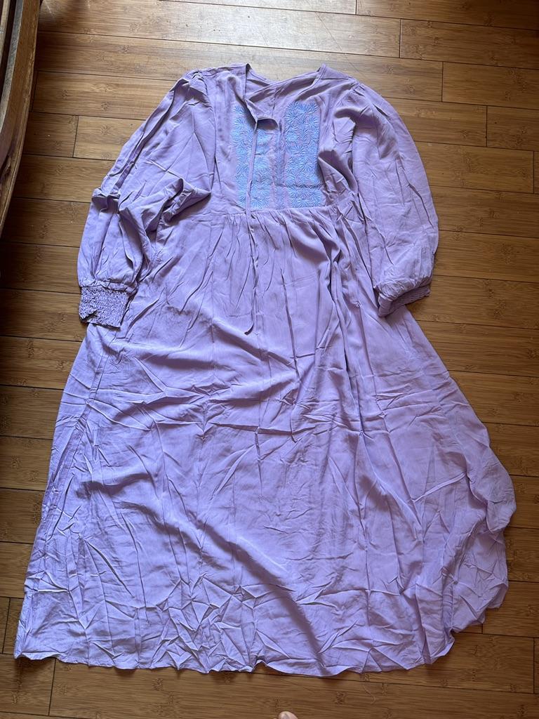 Summer Vintage Art Loose Long Dress Long-Sleeved Crew Neck Embroidered Dress