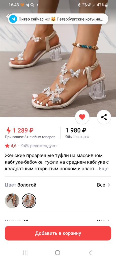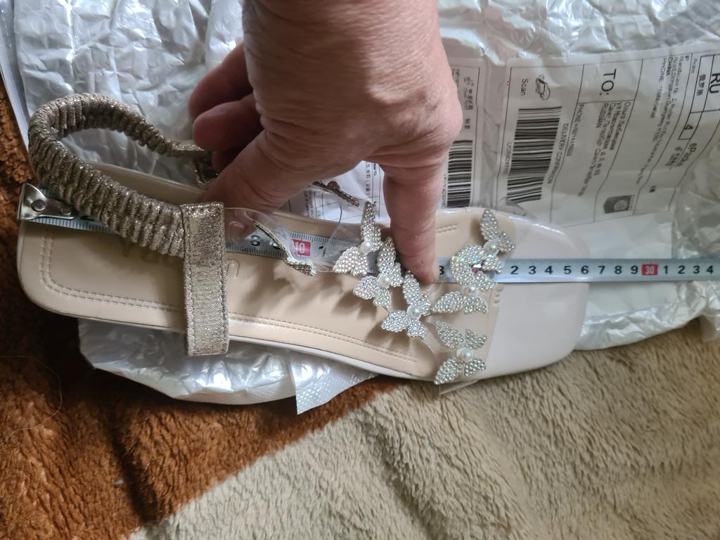 The sandals are beautiful, but the elastic band on the heel is very soft, does not hold the foot. And 1 butterfly is torn off, lies separately.