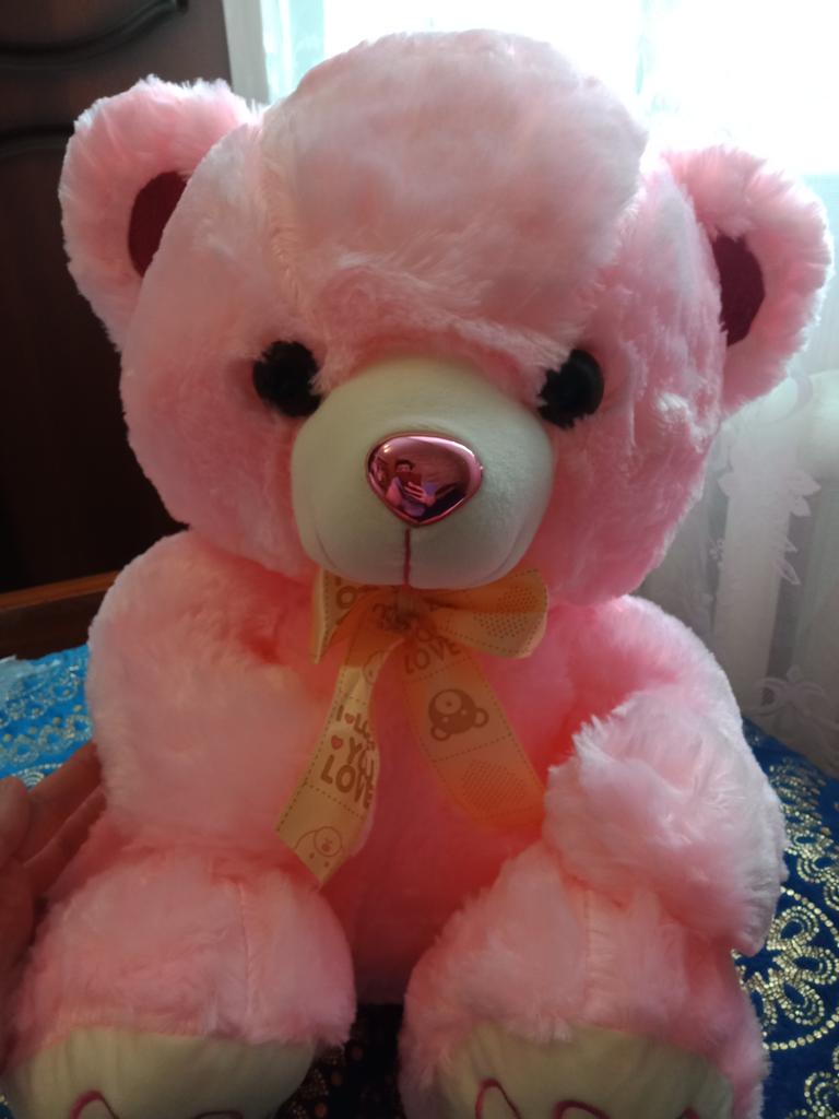 I ordered it in Blue in 50 cm. Superb teddy bear, Magnificent. I recommend it, I intend to take it in Rose, same dimension.